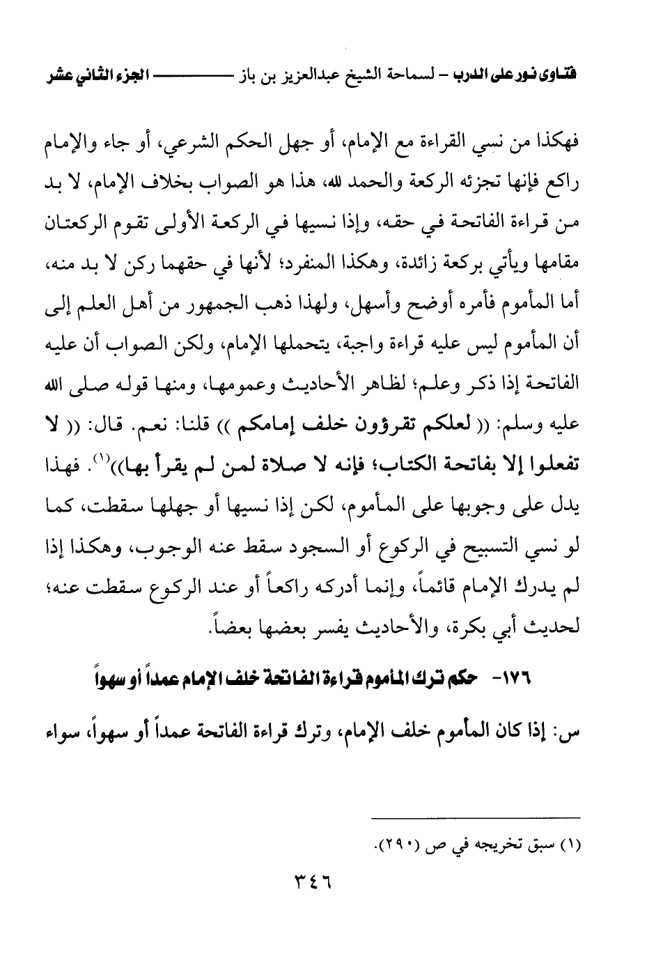 176 - حكم ترك المأموم قراءة الفاتحة خلف الإمام عمدا أو سهوا