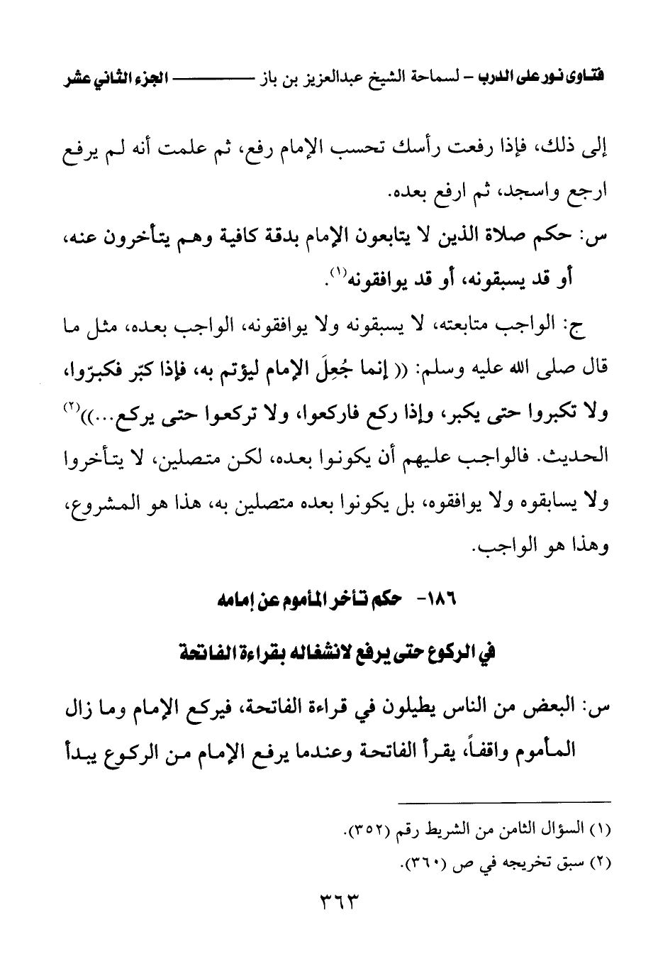186 - حكم تأخر المأموم عن إمامه في الركوع حتى يرفع لانشغاله بقراءة الفاتحة