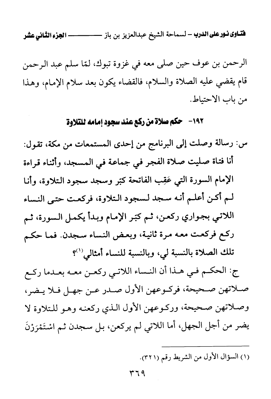 كتاب فتاوى نور على الدرب لابن باز بعناية الشويعر (اسم الجزء: 12)
