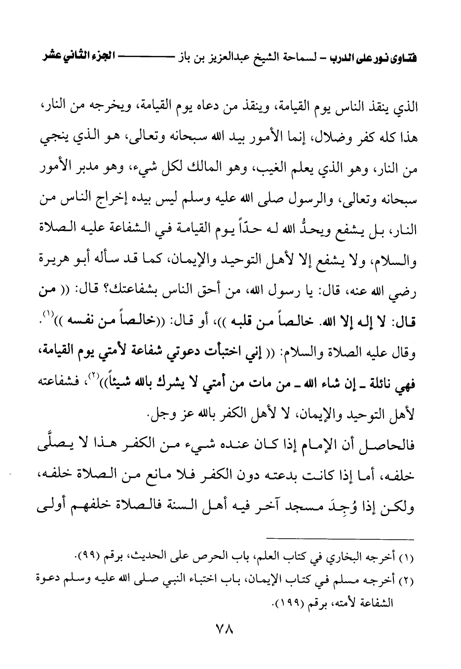 كتاب فتاوى نور على الدرب لابن باز بعناية الشويعر (اسم الجزء: 12)