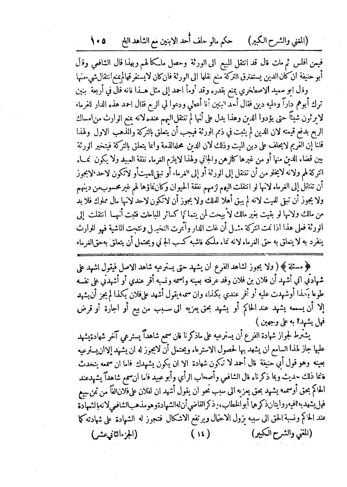 طوعاً بكذا أو شهدت عليه أو أقر عندي بكذا، وإن سمعه يقول أشهد على فلان بكذا لم يجز أن يشهد إلا أن يسمعه يشهد عند الحاكم أو يشهد بحق يعزيه إلى سبب من بيع أو إجارة أو قرض فهل يشهد؟ به على وجهين) يشترط لجواز شهادة الفرع أن يسترعيه على ما ذكرنا فإن سمع شاهداً يسترعي آخر شهادة يشهد عليها جاز لهذا السامع أن يشهد بها لحصول الاسترعاء ويحتمل أن لا يجوز له أن يشهد إلا أن يسترعيه بعينه وهو قول أبي حنيفة قال أحمد لا تكون شهادة إلا أن يكون يشهدك فأما إن سمعه يتحدث فإنما ذلك حديث وبما ذكرناه قال الشافعي وأصحاب الرأي وأبو عبيد فأما إن سمع شاهداً يشهد عند الحاكم بحق أو سمعه يشهد بحق يعزيه إلى سبب نحو أن يقول أشهد أن لفلان على فلان ألفاً من ثمن سبيع فهل يشهد به؟ فيه روايتان ذكرهما أبو الخطاب، وذكر القاضي أن له الشهادة وهو مذهب الشافعي لأنه بالشهادة عند الحاكم ونسبة الحق إلى سببه يزول الاحتمال ويرتفع الاشكال فتجوز له الشهادة على شهادته كما