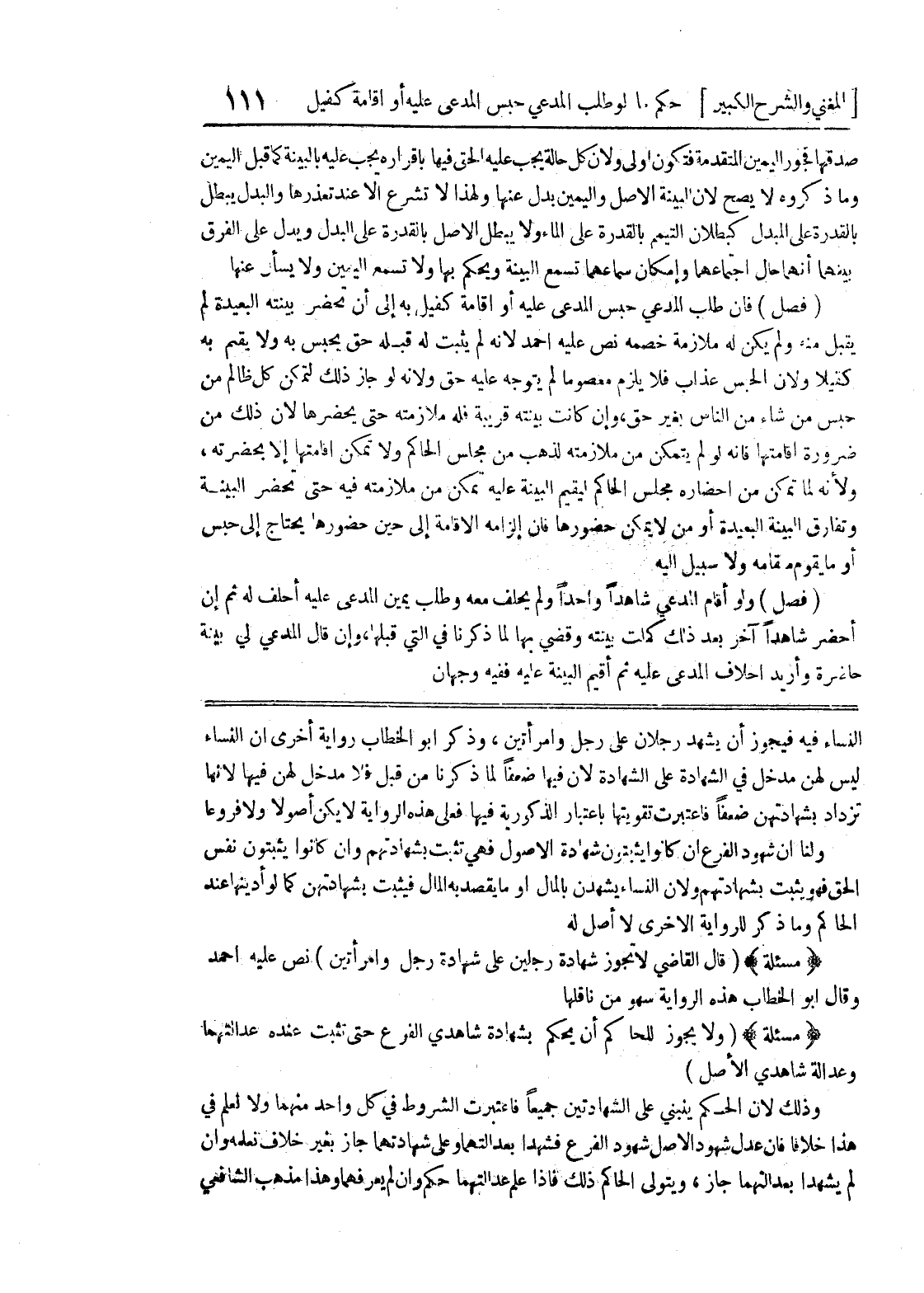 النساء فيه فيجوز أن يشهد رجلان على رجل وامرأتين، وذكر أبو الخطاب رواية أخرى أن النساء ليس لهن مدخل في الشهادة على الشهادة لأن فيها ضعفاً لما ذكرنا من قبل فلا مدخل لهن فيها لأنها تزداد بشهادتهن ضعفاً فاعتبرت تقويتها باعتبار الذكورية فيها فعلى هذه الرواية لا يكن أصولا ولا فروعا ولنا أن شهود الفرع أن كانوا يثبتون شهادة الأصول فهي تثبت بشهادتهم وإن كانوا يثبتون نفس الحق فهو يثبت بشهادتهم ولأن النساء يشهدن بالمال أو ما يقصد به المال فيثبت بشهادتهن كما لو أدينها عند الحاكم وما ذكر للرواية الأخرى لا أصل له (مسألة) (قال القاضي لا تجوز شهادة رجلين على شهادة رجل وامرأتين) نص عليه أحمد