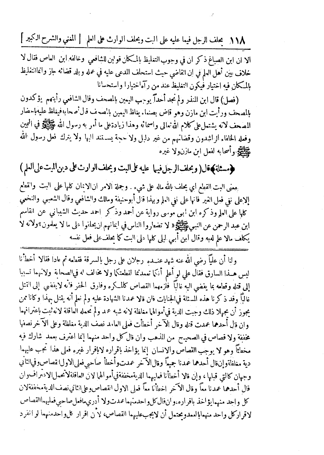 ولنا أن علياً رضي الله عنه شهد عنده رجلان على رجل بالسرقة فقطعه ثم عادا فقالا أخطأنا ليس هذا السارق فقال علي لو أعلم أنكما تعمدتما لقطعتكما ولا مخالف له في الصحابة ولأنهما تسببا إلى قتله وقطعه بما يفضي إليه غالباً فلزمهما القصاص كالمكره وفارق الحفر فإنه لا يفضي إلى القتل غالباً وقد ذكرنا هذه المسألة في الجنايات فإن قالا عمدنا الشهادة عليه ولم نعلم أنه يقتل بهذا وكانا ممن يجوز أن يجهلا ذلك وجبت الدية في أموالهما مغلظة لأنه شبه عمد ولم تحمله العاقلة لأنه ثبت باعترافهما وإن قال أحدهما عمدت قتله وقال الآخر أخطأت فعلى العامد نصف الدية مغلظة وعلى الآخر نصفها مخففة ولا قصاص في الصحيح من المذهب وإن قال كل واحد منهما إنما اعترف بعمد شارك فيه مخطئاً وهو لا يوجب القصاص والإنسان إنما يؤاخذ بإقراره لا بإقرار غيره فعلى هذا تجب عليهما دية مغلظة وإن قال أحدهما عمدنا جميعاً وقال الآخر عمدت وأخطأ صاحبي فعلى الأول القصاص وفي الثاني وجهان كالتي قبلها، وإن قالا أخطأنا فعليهما الدية مخففة في أموالهما لأن العاقلة لا تحمل الاعتراف وإن قال أحدهما عمدنا معاً وقال الآخر أخطأنا معاً فعلى الأول القصاص وعلى الثاني نصف الدية مخففة لأن كل واحد منهما يؤاخذ بإقراره، وإن قال كل واحد منهما عمدت ولا أدري ما فعل صاحبي فعليهما القصاص لإقرار كل واحد منهما بالعمد ويحتمل أن لا يجب عليهما القصاص، لأن إقرار كل واحد منهما لو انفرد