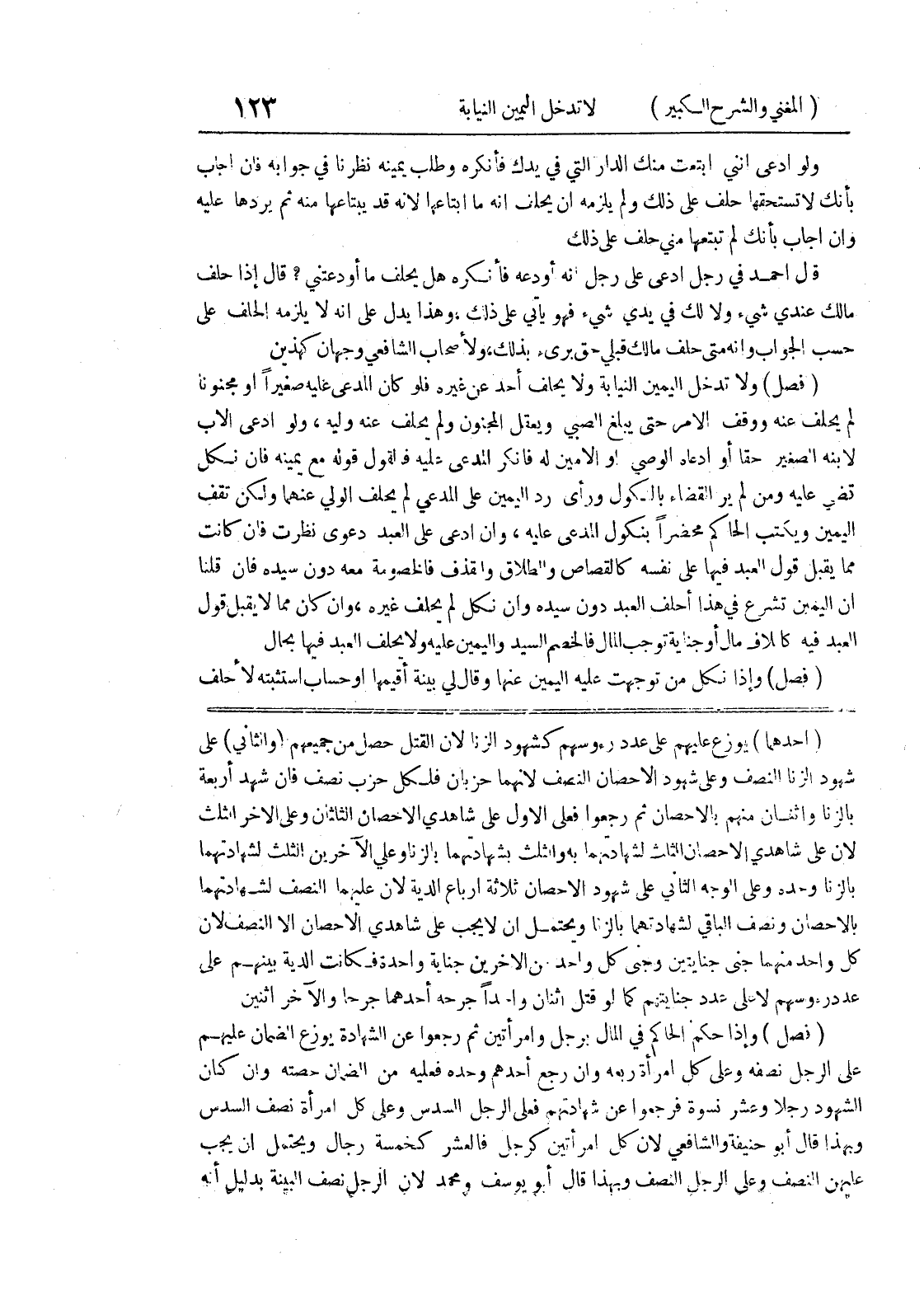 (أحدهما) يوزع عليهم على عدد رؤوسهم كشهود الزنا لأن القتل حصل من جميعهم (والثاني) على شهود الزنا النصف وعلى شهود الإحصان النصف لأنهما حزبان فلكل حزب نصف فإن شهد أربعة بالزنا واثنان منهم بالإحصان ثم رجعوا فعلى الأول على شاهدي الإحصان الثلثان وعلى الآخر الثلث لأن على شاهدي الإحصان الثلث لشهادتهما به والثلث بشهادتهما بالزنا وعلى الآخرين الثلث لشهادتهما بالزنا وحده وعلى الوجه الثاني على شهود الإحصان ثلاثة أرباع الدية لأن عليهما النصف لشهادتهما بالإحصان ونصف الباقي لشهادتهما بالزنا ويحتمل أن لا يجب على شاهدي الإحصان إلا النصف لأن كل واحد منهما جنى جنايتين وجنى كل واحد من الآخرين جناية واحدة فكانت الدية بينهم على عدد رؤوسهم لا على عدد جنايتهم كما لو قتل اثنان واحداً جرحه أحدهما جرحاً والآخر اثنين (فصل) وإذا حكم الحاكم في المال برجل وامرأتين ثم رجعوا عن الشهادة يوزع الضمان عليهم على الرجل نصفه وعلى كل امرأة ربعه وإن رجع أحدهم وحده فعليه من الضمان حصته وإن كان الشهود رجلاً وعشر نسوة فرجعوا على شهادتهم فعلى الرجل السدس وعلى كل امرأة نصف السدس وبهذا قال أبو حنيفة والشافعي لأن كل امرأتين كرجل فالعشر كخمسة رجال ويحتمل أن يجب عليهن النصف وعلى الرجل النصف وبهذا قال أبو يوسف ومحمد لأن الرجل نصف البينة بدليل أنه