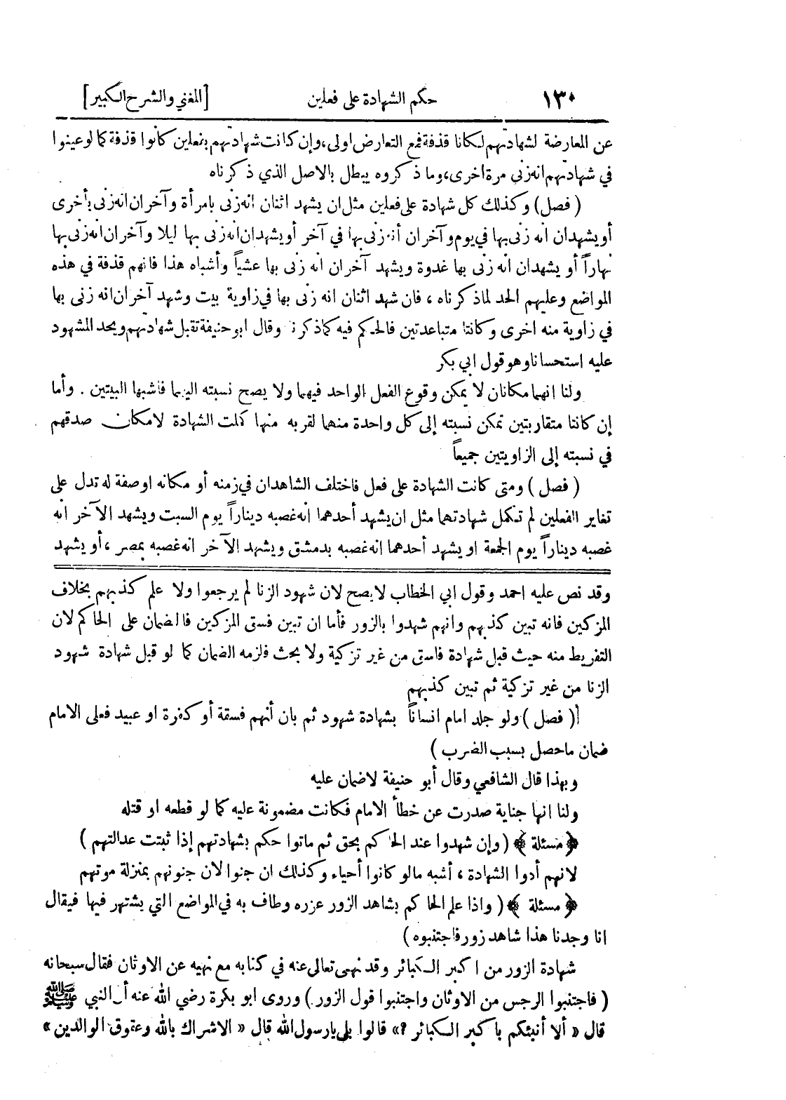 وقد نص عليه أحمد وقول أبي الخطاب لا يصح لأن شهود الزنا لم يرجعوا ولا علم كذبهم بخلاف المزكين فإنه تبين كذبهم وأنهم شهدوا بالزور فأما إن تبين فسق المزكين فالضمان على الحاكم لأن التفريط منه حيث قبل شهادة فاسق من غير تزكية ولا بحث فلزمه الضمان كما لو قبل شهادة شهود الزنا من غير تزكية ثم تبين كذبهم (فصل) ولو جلد إمام انسانا تشهادة شهود ثم بان أنهم فسقة أو كفرة أو عبيد فعلى الإمام ضمان ما حصل بسبب الضرب) وبهذا قال الشافعي وقال أبو حنيفة لا ضمان عليه ولنا أنها جناية صدرت عن خطأ الإمام فكانت مضمونة عليه كما لو قطعه أو فتله (مسألة) (وإذا شهدوا عند الحاكم بحق ثم ماتوا حكم بشهادتهم إذا ثبتت عدالتهم) لأنهم أدوا الشهادة، أشبه ما لو كانوا أحياء وكذلك إن جنوا لأن جنونهم بمنزلة موتهم (مسألة) (وإذا علم الحاكم بشاهد الزور عزره وطاف به في المواضع التي يشتهر فيها فيقال