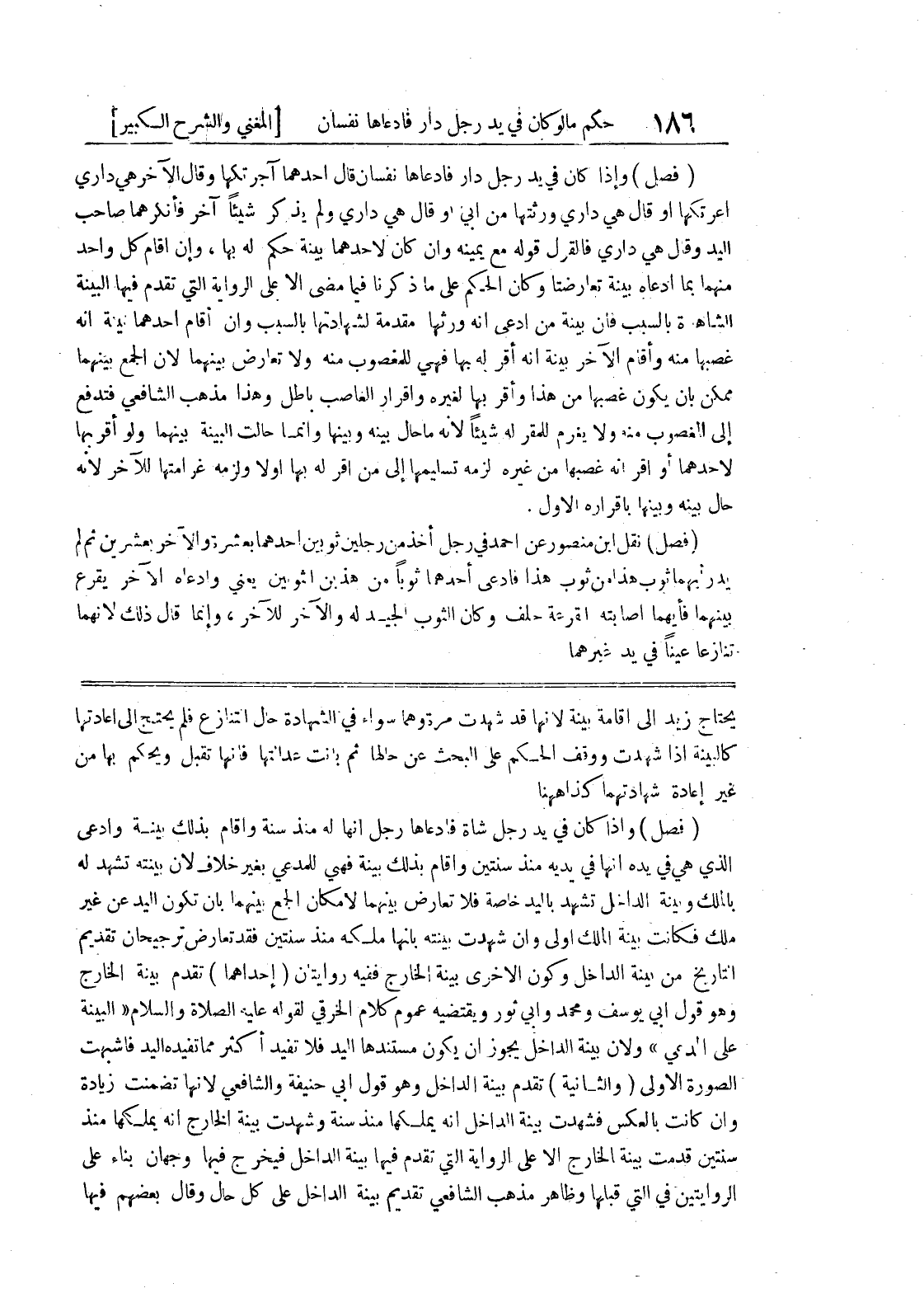 التاريخ من بينة الداخل وكون الأخرى بينة الخارج ففيه روايتان (إحداهما) تقدم بينة الخارج وهو قول أبي يوسف ومحمد وأبي ثور ويقتضيه عموم كلام الخرقي لقوله عليه الصلاة والسلام (البينة على المدعي) ولأن بينة الداخل يجوز أن يكون مستندها اليد فلا تفيد أكثر مما تفيده اليد فاشبهت الصورة الأولى (والثانية) تقدم بينة الداخل وهو قول أبي حنيفة والشافعي لأنها تضمنت زيادة وإن كانت بالعكس فشهدت بينة الداخل أنه يملكها منذ سنة وشهدت بينة الخارج أنه يملكها منذ سنتين قدمت بينة الخارج إلا على الرواية التي تقدم فيها بينة الداخل فيخرج فيها وجهان بناء على الروايتين في التي قبلها وظاهر مذهب الشافعي تقديم بينة الداخل على كل حال وقال بعضهم فيها