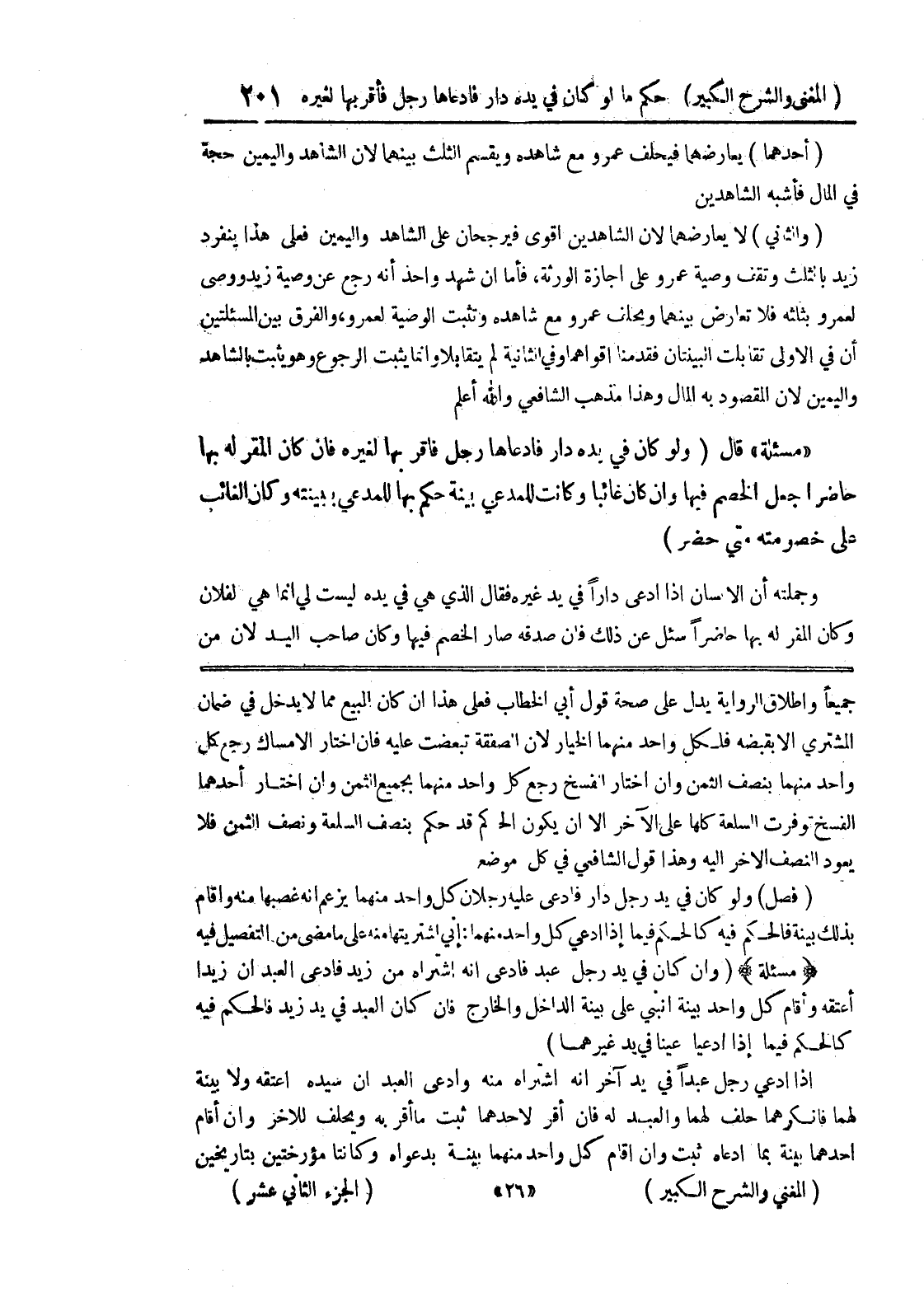 يعود النصف الآخر إليه وهذا قول الشافعي في كل موضع (فصل) ولو كان في يد رجل دار فادعى عليه رجلان كل واحد منهما يزعم أنه غصبها منه وأقام بذلك بينة فالحكم فيه كالحكم فيما إذا إدعى كل واحد منهما: إني اشتريتها منه على ما مضى من التفصيل فيه (مسألة) (وإن كان في يد رجل عبد فادعى أنه اشتراه من زيد فادعى العبد أن زيداً أعتقه وأقام كل واحد بينة انبنى على بينة الداخل والخارج فإن كان العبد في يد زيد فالحكم فيه كالحكم فيما إذا ادعيا عينا في يد غيرهما) إذا ادعى رجل عبداً في يد آخر أنه اشتراه منه وادعى العبد أن سيده أعتقه ولا بينة لهما فأنكرهما حلف لهما والعبد له فإن أقر لأحدهما ثبت ما أقر به ويحلف للآخر وإن أقام أحدهما بينة بما ادعاه ثبت وإن أقام كل واحد منهما بينة بدعواه وكانتا مؤرختين بتاريخين