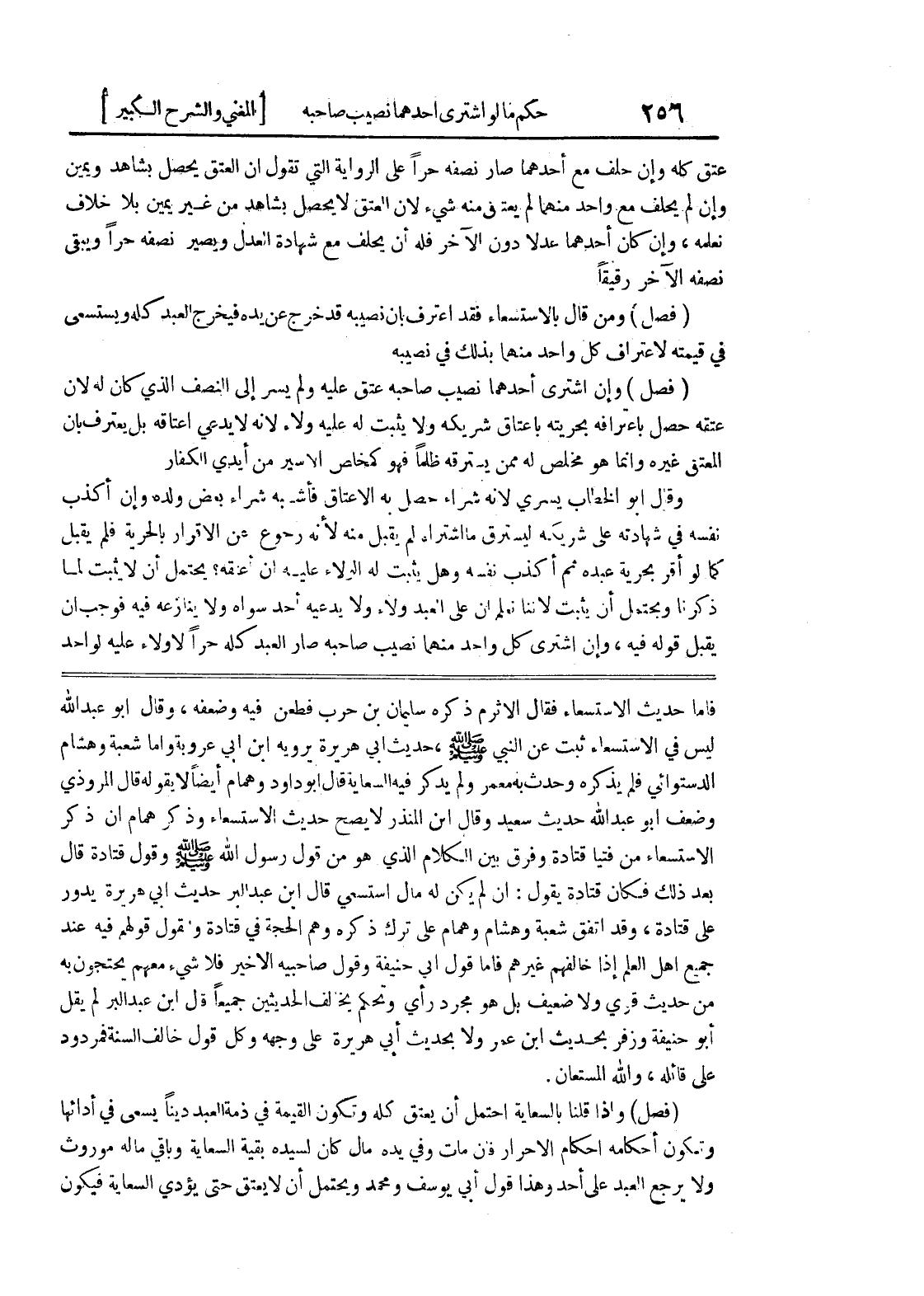 فأما حديث الاستسعاء فقام الأثرم ذكره سليمان بن حرب فطعن فيه وضعفه، وقال أبو عبد الله ليس في الاستسعاء ثبت عن النبي صلى الله عليه وسلم، حديث أبي هريرة يرويه ابن أبي عروبة وأما شعبة وهشام الدستوائي فلم يذكره وحدث به معمر ولم يذكر فيه السعاية قال أبو داود وهمام أيضاً لا يقوله قال المروذي وضعف أبو عبد الله حديث سعيد وقال ابن المنذر لا يصح حديث الاستسعاء وذكر همام أن ذكر الاستسعاء من فتيا قتادة وفرق بين الكلام الذي هو من قول رسول الله صلى الله عليه وسلم وقول قتادة قال بعد ذلك فكان قتادة يقول: إن لم يكن له مال استسعى قال ابن عبد البر حديث أبي هريرة يدور على قتادة، وقد اتفق شعبة وهشام وهمام على ترك ذكره وهم الحجة في قتادة ولقول قولهم فيه عند جميع أهل العلم إذا خالفهم غيرهم فأما قول أبي حنيفة وقول صاحبيه الاخير فلا شئ معهم يحتجون به من حديث قوي ولا ضعيف بل هو محرد رأي وتحكم يخالف الحديثين جميعاً قال ابن عبد البر لم يقل أبو حنيفة وزفر بحديث ابن عمر ولا بحديث أبي هريرة على وجهه وكل قول خالف السنة فمردود على قائله، والله المستعان.