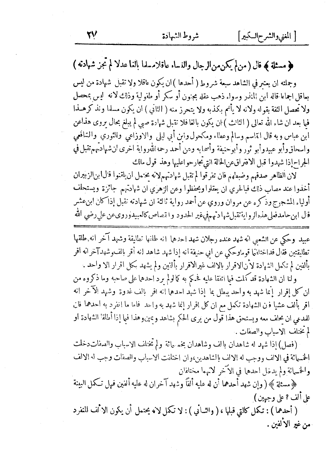 (فصل) إذا شهد له شاهدان بألف وشاهدان بخمسمائة ولم تختلف الأسباب والصفات دخلت الخمسمائة في الألف ووجب له الألف بالشاهدين، وإن اختلفت الأسباب والصفات وجب له الألف والخمسمائة ولم يدخل أحدهما في الآخر لأنهما مختلفان