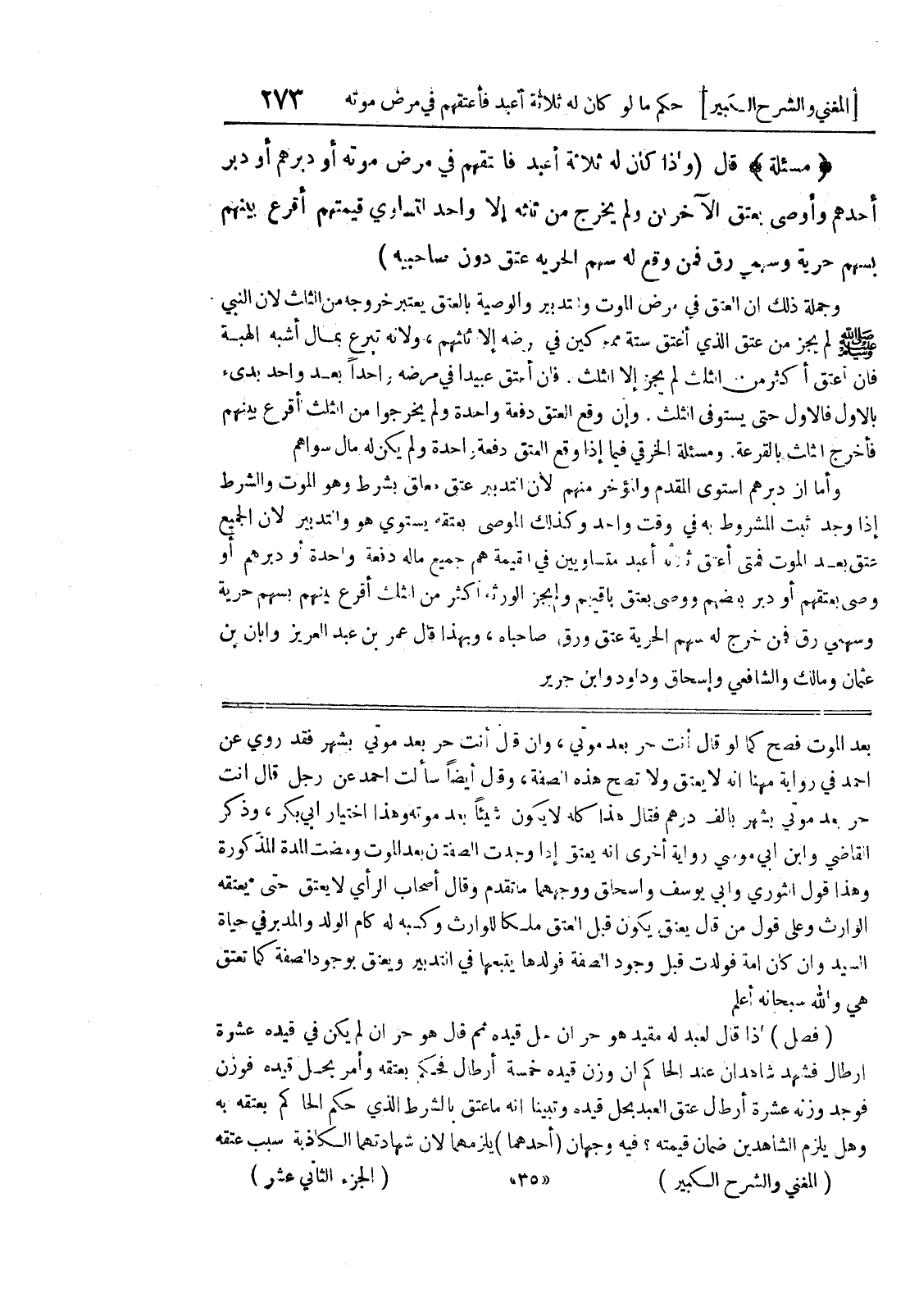 بعد الموت فصح كما لو قال أنت حر بعد موتي، وإن قال أنت حر بعد موتي بشهر فقد روي عن أحمد في رواية مهنا أنه لا يعتق ولا تصح هذه الصفة، وقال أيضاً سألت أحمد عن رجل قال أنت حر بعد موتي بشهر بألف درهم فقال هذا كله لا يكون شيئاً بعد موته وهذا اختيار أبي بكر، وذكر القاضي وابن أبي موسى رواية أخرى أنه يعتق إذا وجدت الصفتين بعد الموت ومضت المدة المذكورة وهذا قول الثوري وابي يوسف واسحاق ووجههما ما تقدم وقال أصحاب الرأي لا يعتق حتى يعتقه الوارث وعلى قول من قال يعتق يكون قبل العتق ملكاً للوارث وكسبه له كأم الولد والمدبر في حياة السيد وإن كان أمة فولدت قبل وجود الصفة فولدها يتبعها في التدبير ويعتق بوجود الصفة كما تعتق هي والله سبحانه أعلم (فصل) إذا قال لعبد له مقيد هو حر إن حل قيده ثم قال هو حر إن لم يكن في قيده عشرة أرطال فشهد شاهدان عند الحاكم أن وزن قيده خمسة أرطال فحكم بعتقه وأمر بحل قيده فوزن فوجد وزنه عشرة أرطال عتق العبد بحل قيده وتبينا أنه ما عتق بالشرط الذي حكم الحاكم بعتقه به وهل يلزم الشاهدين ضمان قيمته؟ فيه وجهان (أحدهما) يلزمهما لأن شهادتهما الكاذبة سبب عتقه