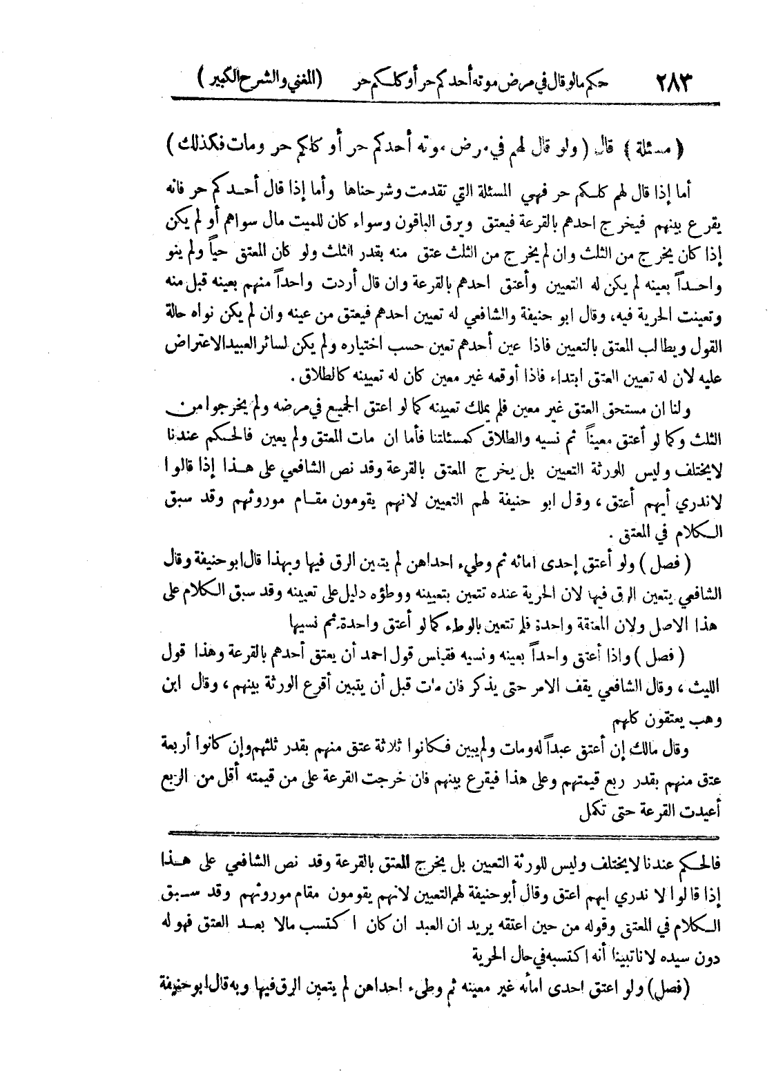فالحكم عندنا لا يختلف وليس للورثة التعيين بل يخرج المعتق بالقرعة وقد نص الشافعي على هذا إذا قالوا لا ندري أيهم أعتق وقال أبو حنيفة لهم التعيين لأنهم يقومون مقام موروثهم وقد سبق الكلام في المعتق وقوله من حين أعتقه يريد أن العبد إن كان اكتسب مالاً بعد العتق فهو له دون سيده لأنا تبينا أنه اكتسبه في حال الحرية (فصل) ولو أعتق إحدى إمائة غير معينة ثم وطئ إحداهن لم يتعين الرق فيها وبه قال أبو حنيفة