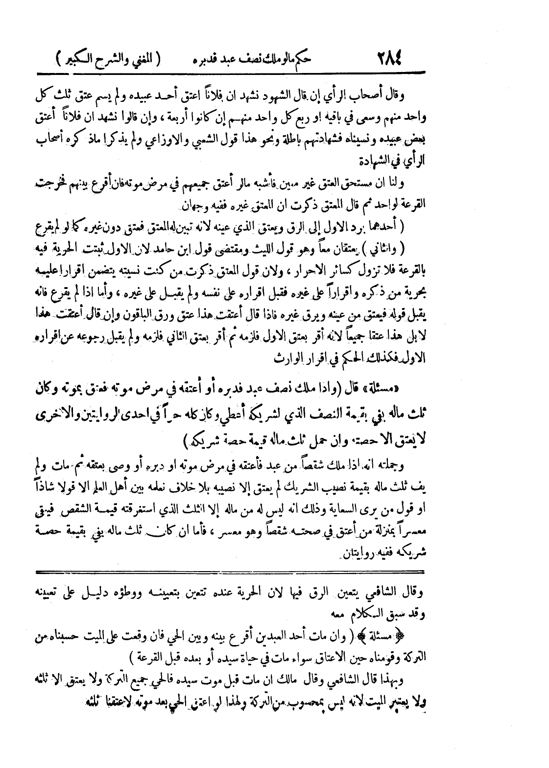 وقال الشافعي يتعين الرق فيها لأن الحرية عنده تتعين بتعيينه ووطؤه دليل على تعيينه وقد سبق الكلام معه (مسألة) (وإن مات أحد العبدين أقرع بينه وبين الحي فإن وقعت على الميت حسبناه من التركة وقومناه حيت الإعتاق سواء مات في حياة سيده أو بعده قبل القرعة) وبهذا قال الشافعي وقال مالك إن مات قبل موت سيده فالحي جميع التركة ولا يعتق إلا ثلثه ولا يعتبر الميت لأنه ليس بمحسوب من التركة ولهذا لو أعتق الحي بعد موته لأعتقنا ثلثه