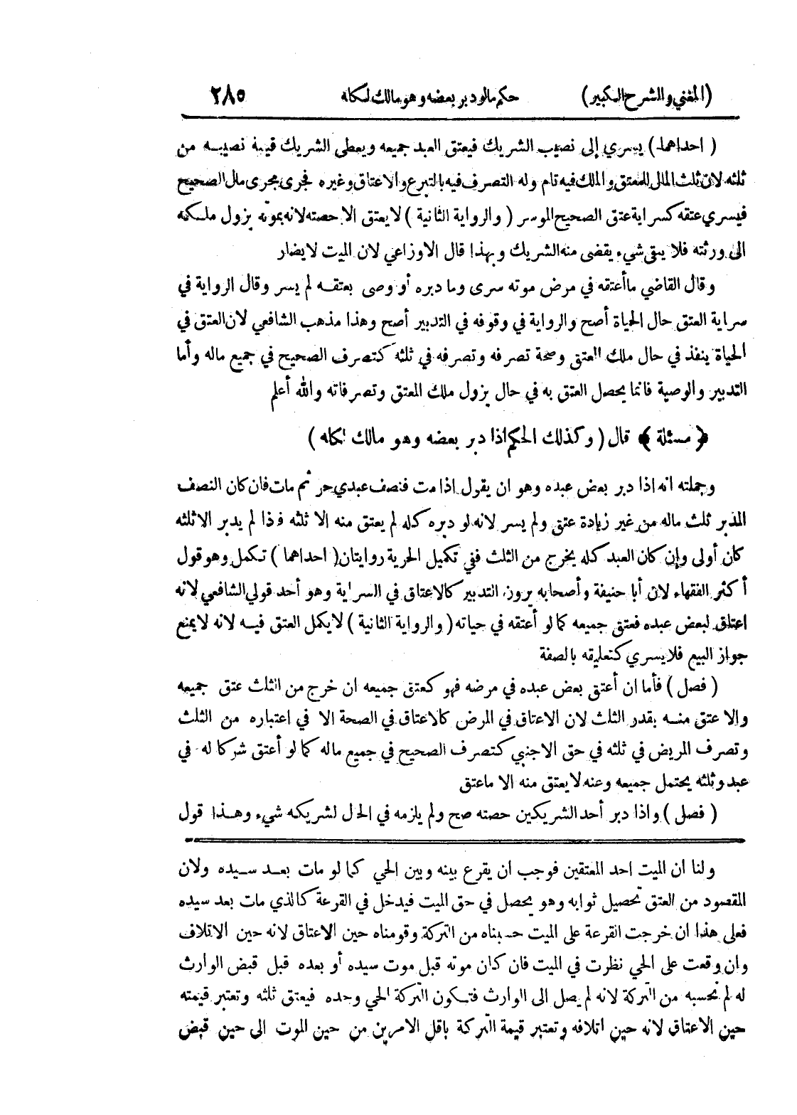ولنا أن الميت أحد المعتقين فوجب أن يقرع بينه وبين الحي كما لو مات بعد سيده ولأن المقصود من العتق تحصيل ثوابه وهو يحصل في حق الميت فيدخل في القرعة كالذي مات بعد سيده فعلى هذا إن خرجت القرعة على الميت حسبناه من التركة وقومناه حين الإعتاق لأنه حين الإتلاف