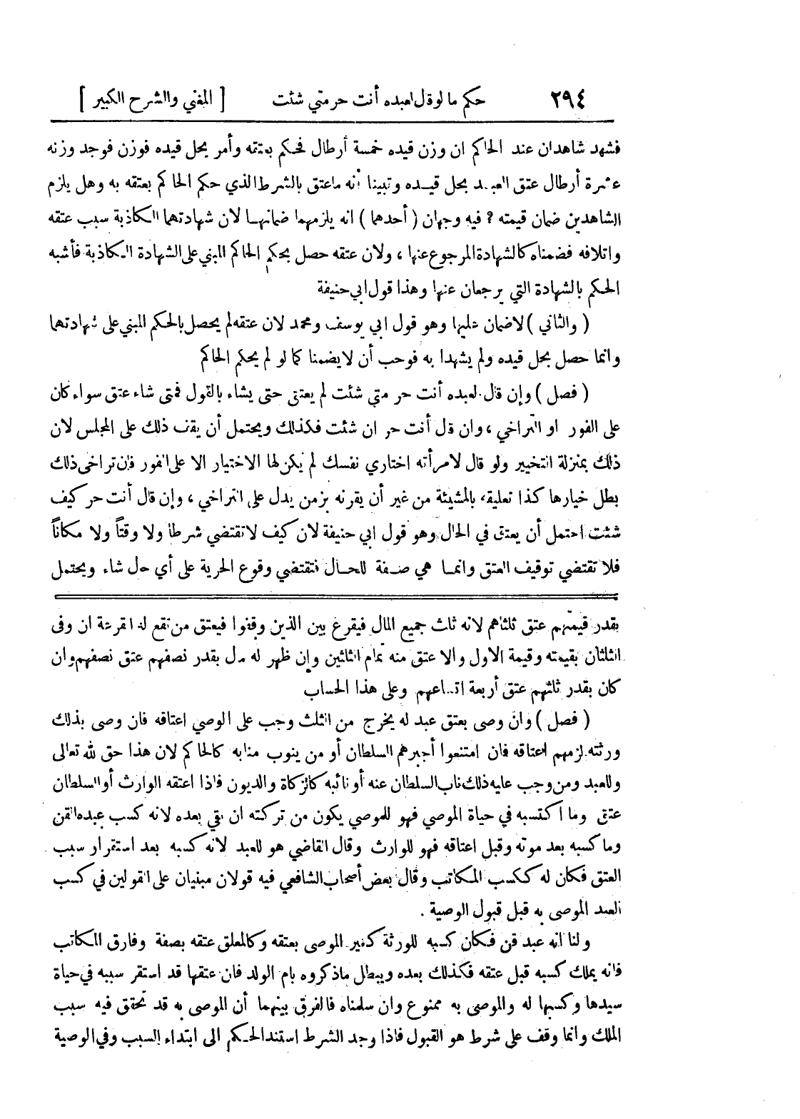 بقدر قيمتهم عتق ثلثاهم لأنه ثلث جميع المال فيقرع بين الذين وقفوا فيعتق من تقع له القرعة إن وفى الثلثان بقيمته وقيمة الأول وإلا عتق منه تمام الثلثين وإن ظهر له مال بقدر نصفهم عتق نصفهم وإن كان بقدر ثلثهم عتق أربعة أتساعهم وعلى هذا الحساب (فصل) وإن وصى بعتق عبد له يخرج من الثلث وجب على الوصي إعتاقه فإن وصى بذلك ورثته لزمهم إعتاقه فإن امتنعوا أجبرهم السلطان أو من ينوب منابه كالحاكم لأن هذا حق لله تعالى وللعبد ومن وجب عليه ذلك ناب السلطان عنه أو نائبه كالزكاة والديون فإذا أعتقه الوارث أو السلطان عتق وما اكتسبه في حياة الموصي فهو للموصي يكون من تركته إن بقي بعده لأنه كسب عبده القن وما كسبه بعد موته وقبل اعتاقه فهو للوارث وقال القاضي هو للعبد لأنه كسبه بعد استقرار سبب العتق فكان له ككسب المكاتب وقال بعض أصحاب الشافعي فيه قولان مبنيان على القولين في كسب العبد الموصى به قبل قبول الوصية.
