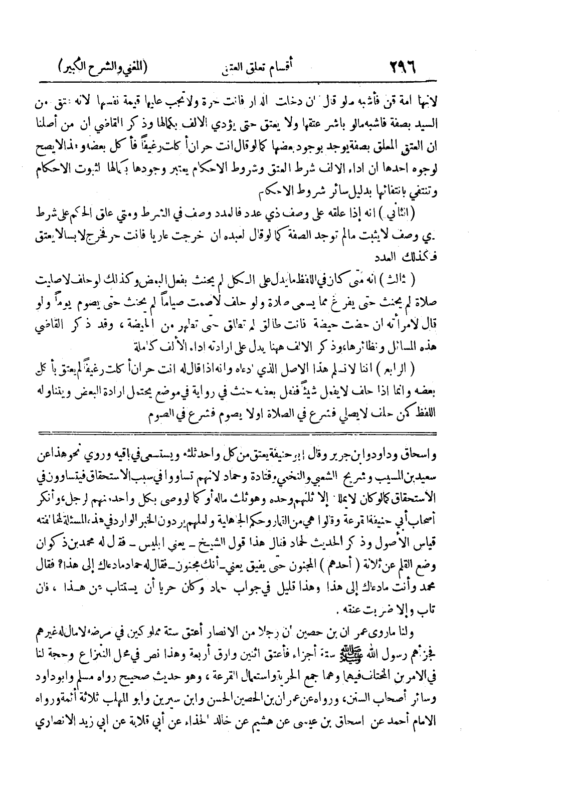 ولنا ما روى عمران بن حصين أن رجلاً من الأنصار أعتق ستة مملوكين في مرضه لا مال له غيرهم فجزأهم رسول الله صلى الله عليه وسلم ستة أجزاء فأعتق اثنين وأرق أربعة وهذا نص في محل الننزاع وحجة لنا في الأمرين المختلف فيهما وهما جمع الحرية واستعمال القرعة، وهو حديث صحيح رواه مسلم وأبو داود وسائر أصحاب السنن، ورواه عن عمران بن الحصين الحسن وابن سيرين وأبو المهلب ثلاثة أئمة ورواه الإمام أحمد عن اسحاق بن عيسى عن هشيم عن خالد الحذاء عن أبي قلابة عن أبي زيد الأنصاري