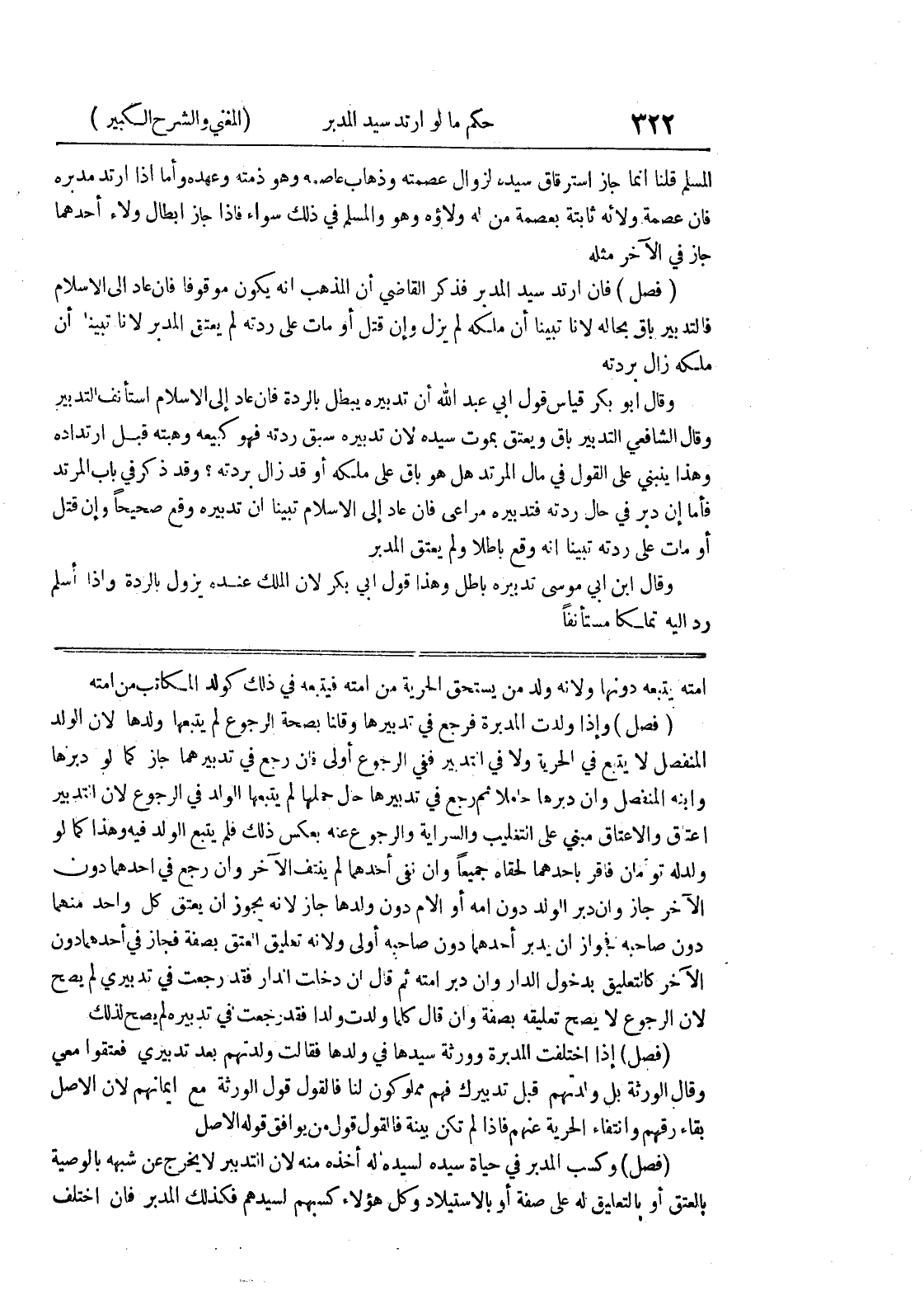 امته يتبعه دونها ولانه ولد من يستحق الحرية من أمته فيتبعه في ذلك كولد المكاتب من أمته (فصل) وإذا ولدت المدبرة فرجع في تدبيرها وقلنا بصحة الرجوع لم يتبعها ولدها لأن الولد المنفصل لا يتبع في الحرية ولا في التدبير ففي الرجوع أولى فإن رجع في تدبيرهما جاز كما لو دبرها وابنه المنفصل وإن دبرها حاملاً ثم رجع في تدبيرها حال حملها لم يتبعها الولد في الرجوع لأن التدبير إعتاق والإعتاق مبني على التغليب والسراية والرجوع عنه بعكس ذلك فلم يتبع الولد فيه وهذا كما لو ولد له توأمان فأقر بأحدهما لحقاه جميعاً وإن نفى أحدهما لم ينتف الآخر وإن رجع في أحدهما دون الآخر جاز وإن دبر الولد دون أمه أو الأم دون ولدها جاز لأنه يجوز أن يعتق كل واحد منهما دون صاحبه فجواز أن يدبر أحدهما دون صاحبه أولى ولأنه تعليق العتق بصفة فجاز في أحدهما دون الآخر كالتعليق بدخول الدار وإن دبر أمته ثم قال إن دخلت الدار فقد رجعت في تدبيري لم يصح لأن الرجوع لا يصح تعليقه بصفة وإن قال كلما ولدت ولداً فقد رجعت في تدبيره لم يصح لذلك (فصل) إذا اختلفت المدبرة وورثة سيدها في ولدها فقالت ولدتهم بعد تدبيري فعتقوا معي وقال الورثة بل ولدتهم قبل تدبيرك فهم مملوكون لنا فالقول قول الورثة مع إيمانهم لأن الأصل بقاء رقهم وانتفاء الحرية عنهم فإذا لم تكن بينة فالقول قول من يوافق قوله الأصل (فصل) وكسب المدبر في حياة سيده لسيده لم أخذه منه لأن التدبير لا يخرج عن شبهه بالوصية بالعتق أو بالتعليق له على صفة أو بالاستيلاد وكل هؤلاء كسبهم لسيدهم فكذلك المدبر فإن اختلف