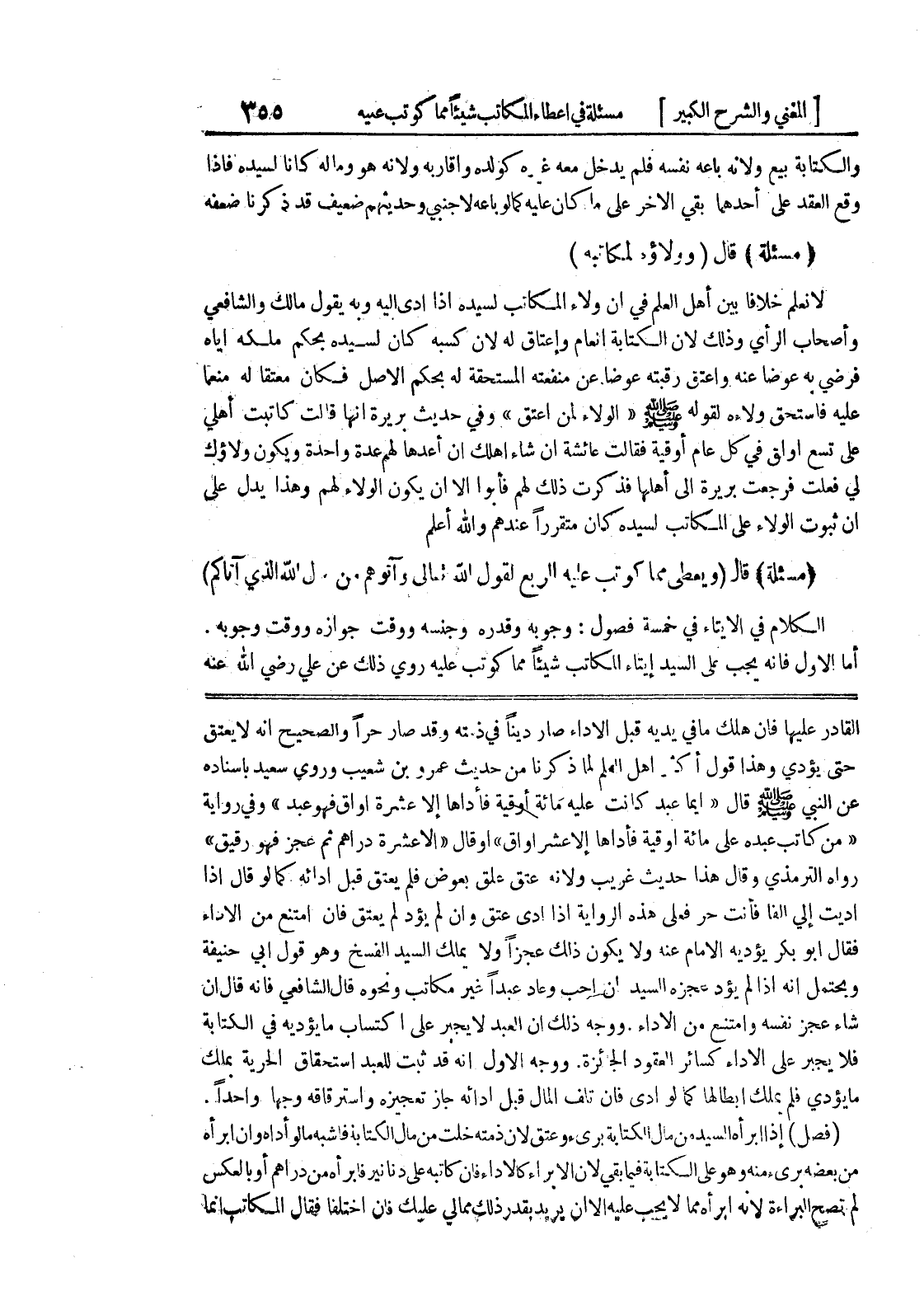 ووجه الأول أنه قد ثبت للعبد استحقاق الحرية بملك ما يؤدي فلم يملك إبطالها كما لو ادى فإن تلف المال قبل ادائه جاز تعجيزه واسترقاقه وجهاً واحداً.