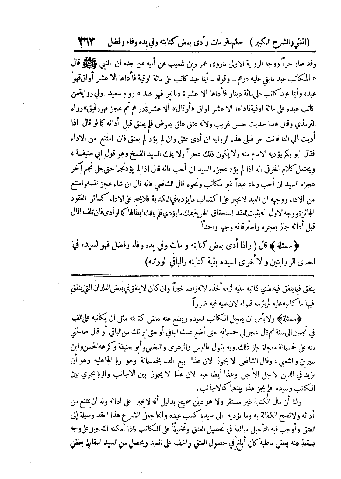 ينفق فيما ينفق فيه الذي كاتيه عليه لزمه أخذه لأنه زاده خيراً وإن كان لا ينفق في بعض البلدان التي ينفق فيها ما كاتبه عليه لم يلزمه قبوله لأن عليه فيه ضرارا (مسألة) ولا بأس ان يجعل المكاتب لسيده ويضع عنه بعض كتابته مثل أن يكاتبه على ألف في نجمين إلى سنة ثم قال عجل لي خمسمائة حتى أضع عنك الباقي أو حتى أبرئك من الباقي أو قال صالحني منه على خمسمائة معجلة جاز ذلك.