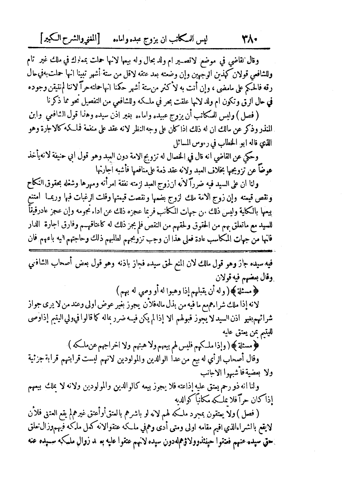 فيه سيده جاز وهو قول مالك لأن المنع لحق سيده فجاز بإذنه وهو قول بعض أصحاب الشافعي وقال بعضهم فيه قولان (مسألة) (وله أن يقبلهم إذا وهبوا له أو وصي له بهم) لأنه إذا ملك شراءهم مع ما فيه من بذل ماله فلأن يجوز بغير عوض أولى وعند من لا يرى جواز شرائهم بغير إذن السيد لا يجوز قبولهم إلا إذا لم يكن فيه ضرر بماله كما قالوا في ولي اليتيم إذا وصى لليتيم بمن يعتق عليه (مسألة) (وإذا ملكهم فليس لهم بيعهم ولا هبتهم ولا إخراجهم عن ملكه) وقال أصحاب الرأي له بيع من عدا الوالدين والمولودين لأنهم ليست قرابتهم قرابة جزئية ولا بعضية فأشبهوا الأجانب ولنا أنه ذو رحم يعتق عليه إذاعته فلا يجوز بيعه كالوالدين والمولودين ولأنه لا يملك بيعهم إذا كان حراً فلا يملكه مكاتباً كوالديه (فصل) ولا يعتقون بمجرد ملكه لهم لأنه لو باشرهم بالعتق أو أعتق غيرهم لم يقع العتق فلأن لا يقع بالشراء الذي أقيم مقامه أولى ومتى أدى وهم في ملكه عتقوا لأنه كمل ملكه فيهم وزال تعلق
