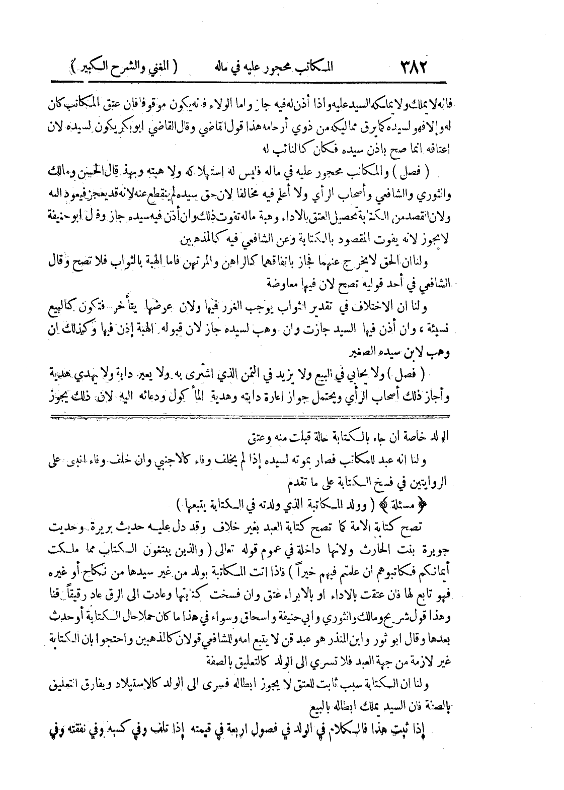 الولد خاصة إن جاء بالكتابة حالة قبلت منه وعتق ولنا أنه عبد للمكاتب فصار بموته لسيده إذا لم يخلف وفاء كالأجنبي وإن خلف وفاء انبنى على الروايتين في فسخ الكتابة على ما تقدم (مسألة) (وولد المكاتبة الذي ولدته في الكتابة يتبعها) تصح كتابة الأمة كما تصح كتابة العبد بغير خلاف وقد دل عليه حديث بريرة وحديث جويرة بنت الحارث ولأنها داخلة في عموم قوله تعالى (والذين يبتغون الكتاب مما ملكت أيمانكم فكاتبوهم إن علمتم فيهم خيراً) فإذا أتت المكاتبة بولد من غير سيدها من نكاح أو غيره
