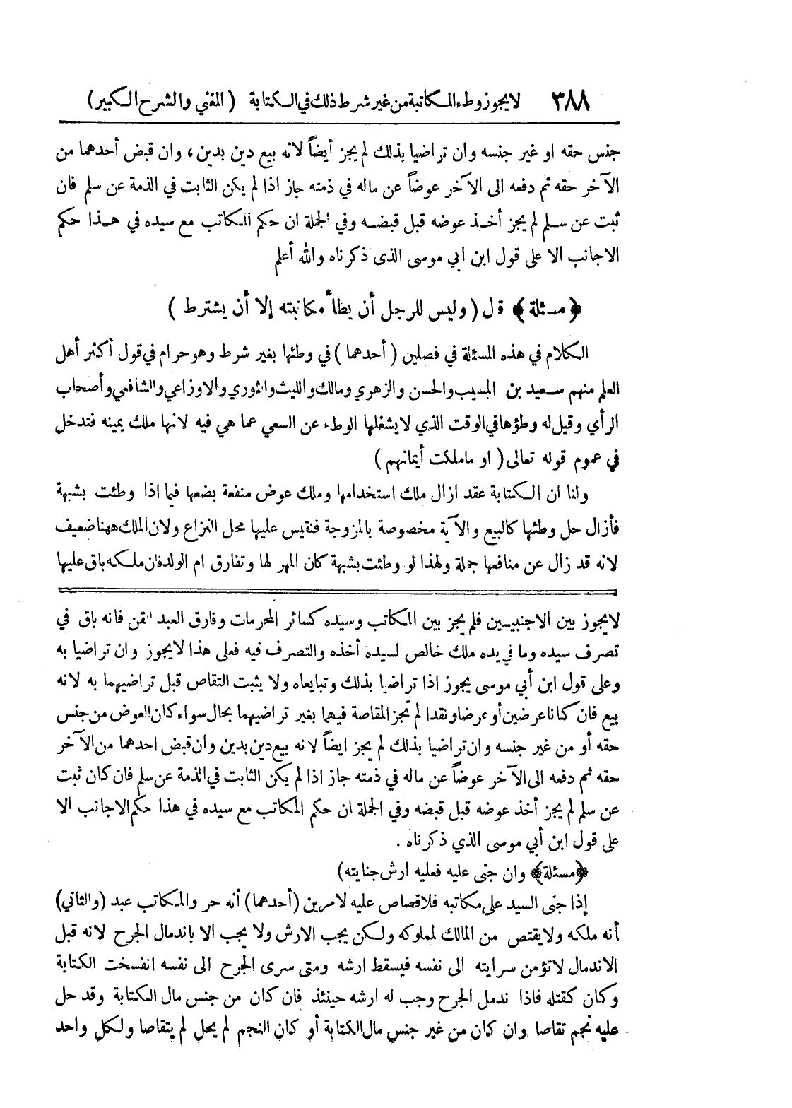 حقه ثم دفعه إلى الآخر عوضاً عن ماله في ذمته جاز إذا لم يكن الثابت في الذمة عن سلم فإن كان ثبت عن سلم لم يجز أخذ عوضه قبل قبضه وفي الجملة أن حكم المكاتب مع سيده في هذا حكم الأجانب إلا على قول ابن أبي موسى الذي ذكرناه.