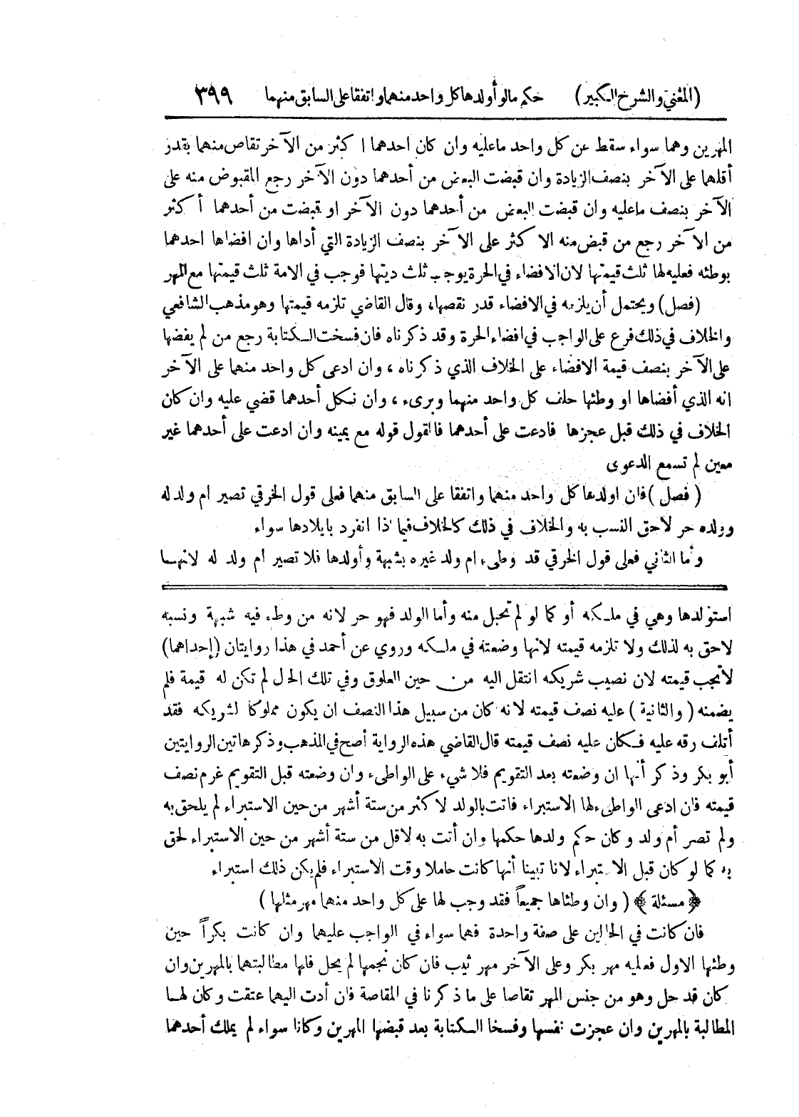 استولدها وهو في ملكه أو كما لو لم تحبل منه وأما الولد فهو حر لأنه من وطئ فيه شبهة ونسبه لاحق به لذلك ولا تلزمه قيمته لأنها وضعته في ملكه وروي عن أحمد في هذا روايتان (إحداهما) لا تجب قيمته لان نصيب شريكه انتقل إليه من حين العلوق وفي تلك الحال لم تكن له قيمة فلم يضمنه (والثانية) عليه نصف قيمته لأنه كان من سبيل هذا النصف أن يكون مملوكاً لشريكه فقد أتلف رقه عليه فكان عليه نصف قيمته قال القاضي هذا الرواية أصح في المذهب وذكر هاتين الروايتين أبو بكر وذكر أنها إن وضعته بعد التقويم فلا شئ على الواطئ وإن وضعته قبل التقويم غرم نصف قيمته فإن ادعى الواطئ لها لاستبراء فأتت بالولد لأكثر من ستة أشهر من حين الاستبراء لم يلحق به ولم تصر أم ولد وكان حكم ولدها حكمها وإن أتت به لأقل من ستة أشهر من حين الاستبراء لحق به كما لو كان قبل الاستبراء لأنا تبينا أنها كانت حاملاً وقت الاستبراء فلم يكن ذلك استبراء (مسألة) (وان وطئاها جميعاً فقد وجب لها على كل واحد منهما مهر مثلها) فإن كانت في الحالين على صفة واحدة فهما سواء في الواجب عليهما وإن كانت بكراً حين وطئها الأول فعليه مهر بكر وعلى الآخر مهر ثيب فإن كان نجمها لم يحل فلها مطالبتهما بالمهرين وإن كان قد حل وهو من جنس المهر تقاصا على ما ذكرنا في المقاصة فإن أدت إليهما عتقت وكان لها المطالبة بالمهرين وإن عجزت نفسها وفسخا الكتابة بعد قبضها المهرين وكانا سواء لم يملك أحدهما