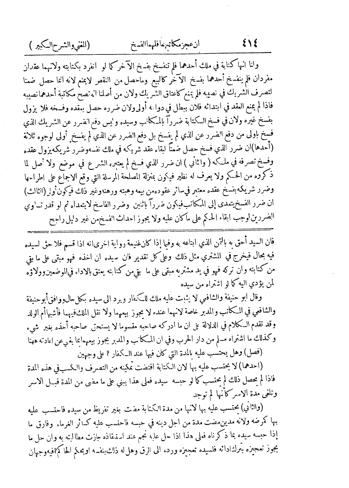 وكذلك ما اشتراه مسلم من دار الحرب وفي أن المكاتب والمدبر يجوز بيعهما بما يغني عن إعادته ههنا (فصل) وهل يحتسب عليه بالمدة التي كان فيها عند الكفار؟ على وجهين (أحدهما) لا يحتسب عليه بها لأن الكتابة اقتضت تمكينه من التصرف والكسب في هذه المدة فإذا لم يحصل ذلك لم يحتسب كما لو حسبه سيده فعلى هذا يبني على ما مضى من المدة قبل الأسر وتلغى مدة الأسر كأنها لم توجد (والثاني) يحتسب عليه بها لأنها من مدة الكتابة مضت بغير تفريظ من سيده فاحتسب عليه بها كمرضه ولأنه مدين مضت مدة من أجل دينه في حبسه فاحتسب عليه كسائر الغرماء وفارق ما إذا حبسه سيده بما ذكرناه فعلى هذا إذا حل عليه نجم عند استنقاذه جازت مطالبته به وإن حل ما يجوز تعجيزه بترك أدائه فلسيده تعجيزه ورده إلى الرق وهل له ذلك بنفسه أو بحكم الحاكم؟ فيه وجهان