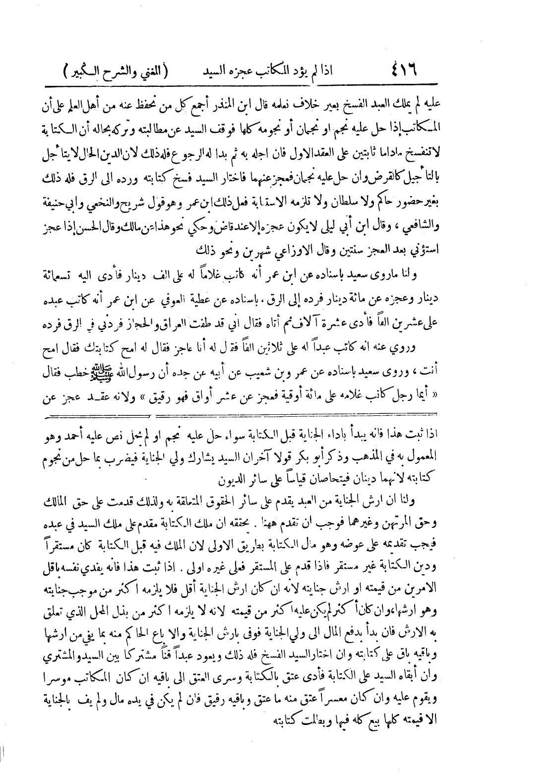 إذا ثبت هذا فإنه يبدأ بأداء الجناية قبل الكتابة سواء حل عليه نجم أو لم يحل نص عليه أحمد وهو المعمول به في المذهب وذكر أبو بكر قولاً آخر أن السيد يشارك ولي الجناية فيضرب بما حل من نجوم كتابته لأنهما دينان فيتحاصان قياساً على سائر الديون ولنا أن أرش الجناية من العبد يقدم على سائر الحقوق المتعلقة به ولذلك قدمت على حق المالك وحق المرتهن وغيرهما فوجب أن تقدم ههنا.