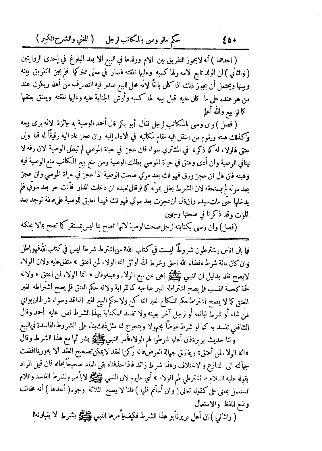 فما بال أناس يشترطون شروطاً ليست في كتاب الله؟ من اشترط شرطاً ليس في كتاب الله فهو باطل وإن كان مائة شرط، قضاء الله أحق وشرط الله أوثق إنما الولاء لمن أعتق) متفق عليه ولأن الولاء لا يصح نقله بدليل أن النبي صلى الله عليه وسلم نهى عن بيع الولاء وهبته وقال (إنما الولاء لمن أعتق) ولأنه لحمة كلحمة النسب فلم يصح اشتراطه لغير صاحبه كالقرابة ولأنه حكم العتق فلم يصح اشتراطه لغير المعتق كما لا يصح اشتراط حكم النكاح لغير الناكح ولا حكم البيع لغير العاقد وسواء شرط أن يوالي من شاء أو شرط لبائعه أو لرجل آخر بعينه ولا تفسد الكتابة بهذا الشرط نص عليه أحمد وقال الشافعي تفسد به كما لو شرط عوضاً مجهولاً ويتخرج لنا مثل ذلك بناء على الشروط الفاسدة في البيع ولنا حديث بريرة فإن أهلها شرطوا لهم الولاء فأمر النبي صلى الله عليه وسلم بشرائها مع هذا الشرط وقال (إنما الولاء لمن اعتق) ويفارق جهالة العوض فإنه ركن العقد لا يمكن تصحيح العقد إلا به وربما أفضت جهالته إلى التنازع والاختلاف وهذا شرط زائد فإذا حذفناه بقي العقد صحيحاً بحاله فإن قيل المراد بقوله عليه السلام (اشترطي لهم الولاء) أي عليهم لأن النبي صلى الله عليه وسلم لا يأمر بالشرط الفاسد واللام تستعمل بمعنى على كقوله تعالى (وإن أسأتم فلها) قلنا لا يصح لثلاث وجوه (أحدها) أنه مخالف وضع اللفظ والاستعمال (والثاني) أن أهل بريرة أبو هذا الشرط فكيف يأمرها النبي صلى الله عليه وسلم بشرط لا يقبلونه؟