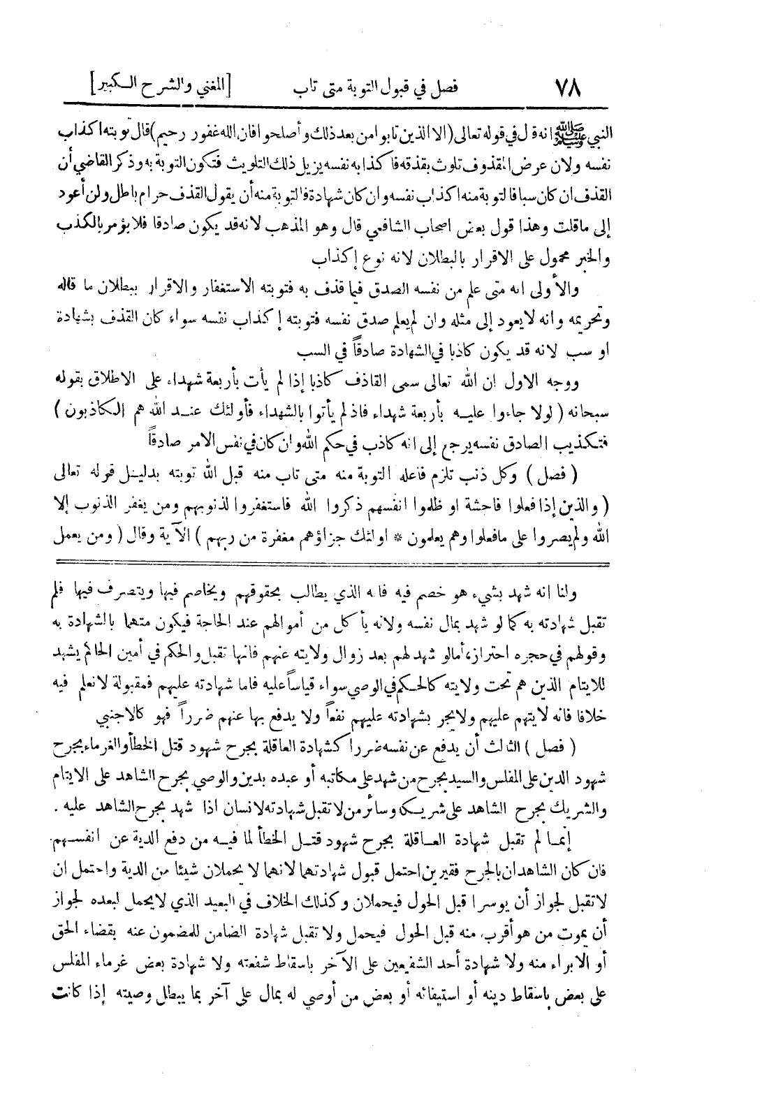 خلافاً فإنه لا يتهم عليهم ولا يجر بشهادته عليهم نفعاً ولا يدفع بها عنهم ضرراً فهو كالأجنبي (فصل) الثالث أن يدفع عن نفسه ضرراً كشهادة العاقلة بجرح شهود قتل الخطأ والغرماء بجرح شهود الدين على المفلس والسيد بجرح من شهد على مكاتبه أو عبده بدين والوصي بجرح الشاهد على الأيتام والشريك بجرح الشاهد على شريكه وسائر من لا تقبل شهادته لإنسان إذا شهد بجرح الشاهد عليه.