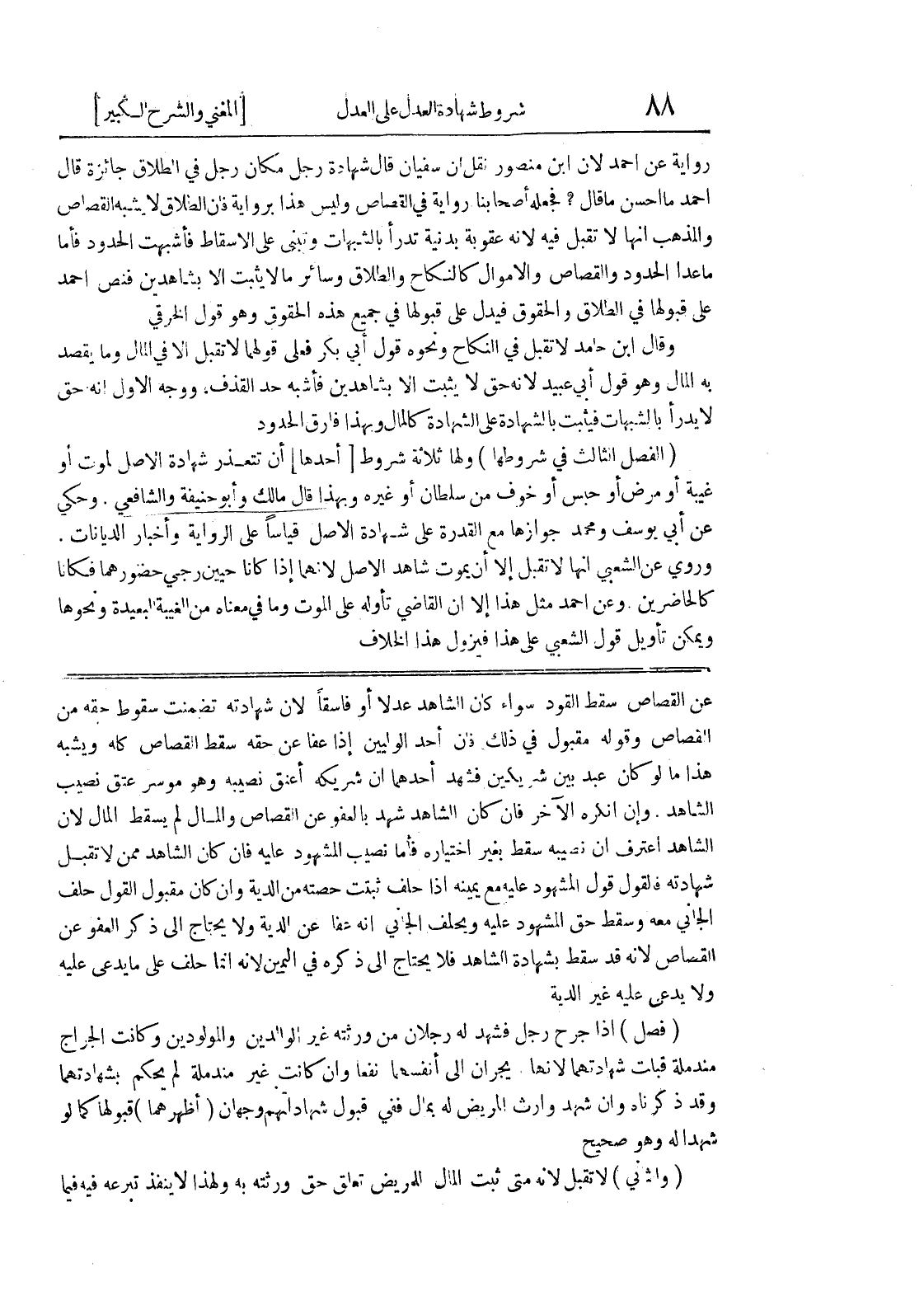 عن القصاص سقط القود سواء كان الشاهد عدلاً أو فاسقاً لأن شهادته تضمنت سقوط حقه من القصاص وقوله مقبول في ذلك فإن أحد الوليين إذا عفا عن حقه سقط القصاص كله ويشبه هذا ما لو كان عبد بين شريكين فشهد أحدهما أن شريكه أعنق نصيبه وهو موسر عتق نصيب الشاهد.