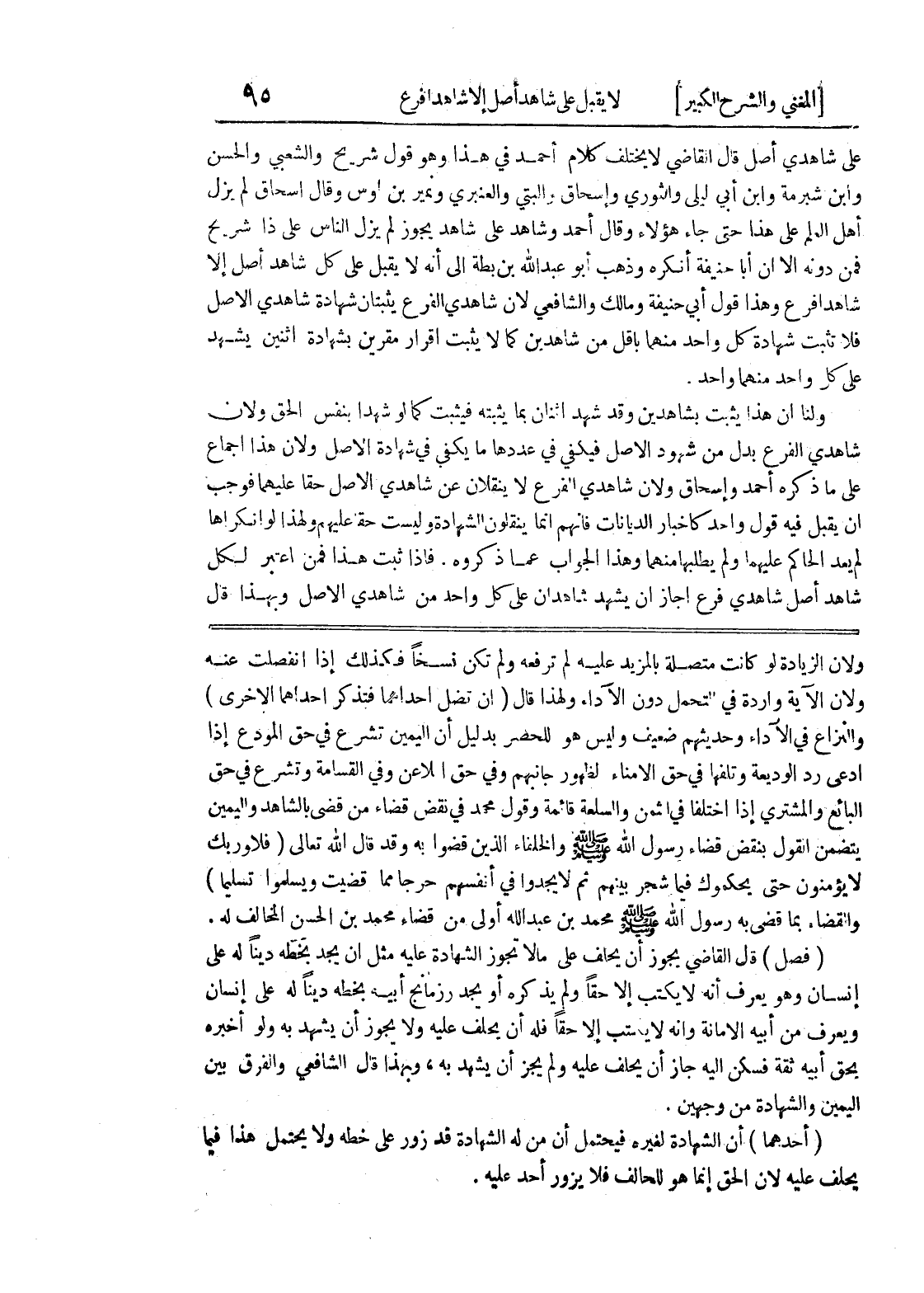 ولأن الزيادة لو كانت متصلة بالمزيد عليه لم ترفعه ولم تكن نسخاً فكذلك إذا انفصلت عنه ولأن الآية واردة في التحمل دون الأداء ولهذا قال (أن تضل إحداهما فتذكر إحداهما الأخرى) والنزاع في الأداء وحديثهم ضعيف وليس هو للحصر بدليل أن اليمين تشرع في حق المودع إذا ادعى رد الوديعة وتلفها في حق الأمناء لظهور جانبهم وفي حق الاعن وفي القسامة وتشرع في حق البائع والمشتري إذا اختلفا في الثمن والسلعة قائمة وقول محمد في نقض قضاء من قضى بالشاهد واليمين يتضمن القول بنقض قضاء رسول الله صلى الله عليه وسلم والخلفاء الذين قضوا به وقد قال الله تعالى (فلا وربك لا يؤمنون حتى يحكموك فيما شجر بينهم ثم لا يجدوا في أنفسهم حرجا مما قضيت ويسلموا تسليما) والقضاء بما قضى به رسول الله صلى الله عليه وسلم محمد بن عبد الله أولى من قضاء محمد بن الحسن المخالف له.