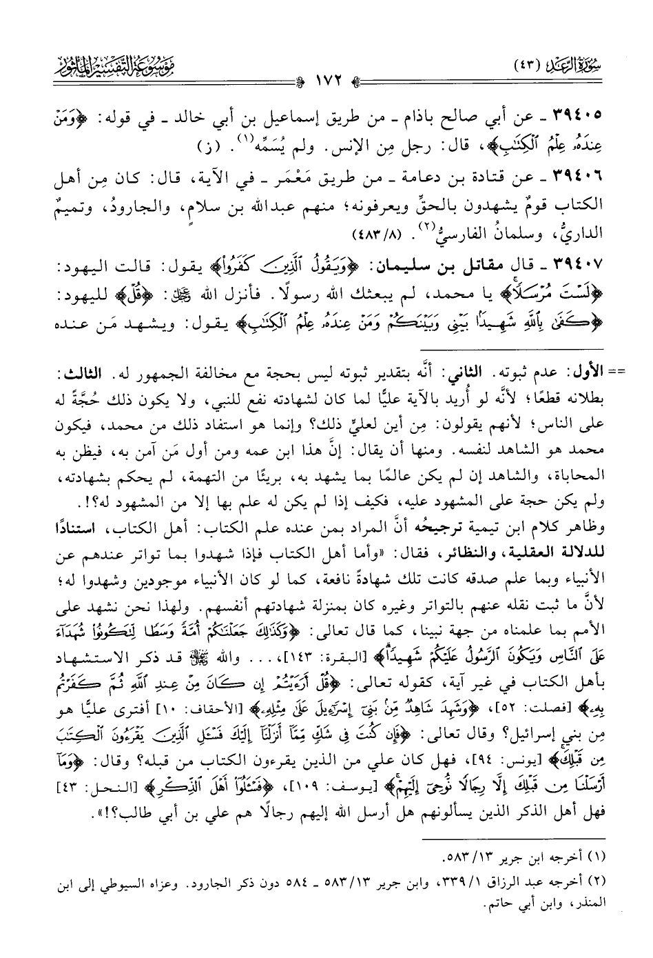 ٣٩٤٠٥ - عن أبي صالح باذام -من طريق إسماعيل بن أبي خالد- في قوله: {ومَن عندَه علم الكتاب}، قال: رجل مِن الإنس. ولم يُسَمِّه (¬١). (ز)