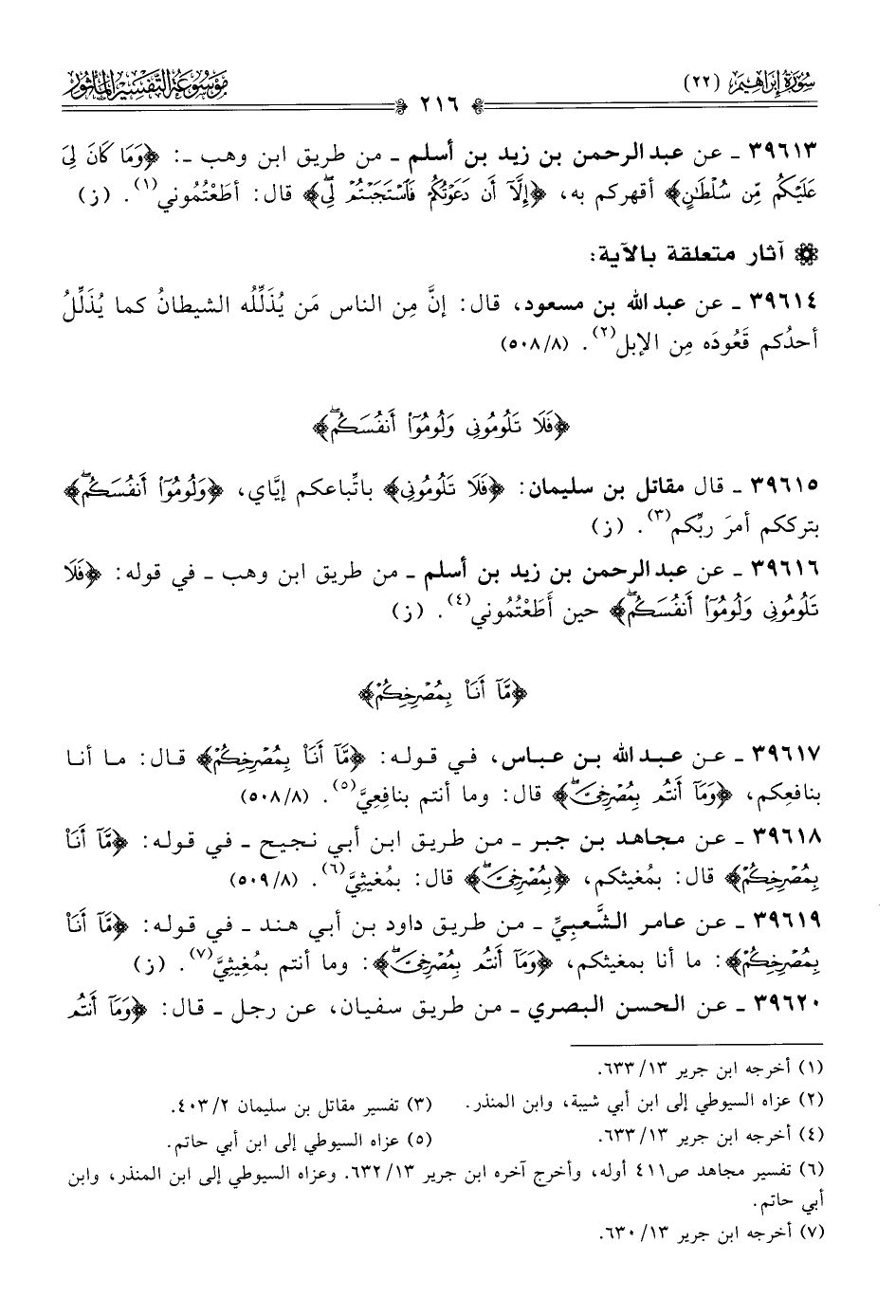 ٣٩٦١٦ - عن عبد الرحمن بن زيد بن أسلم -من طريق ابن وهب- في قوله: {فلا تلوموني ولوموا أنفسكم} حين أطَعْتُمُوني (¬٤). (ز)