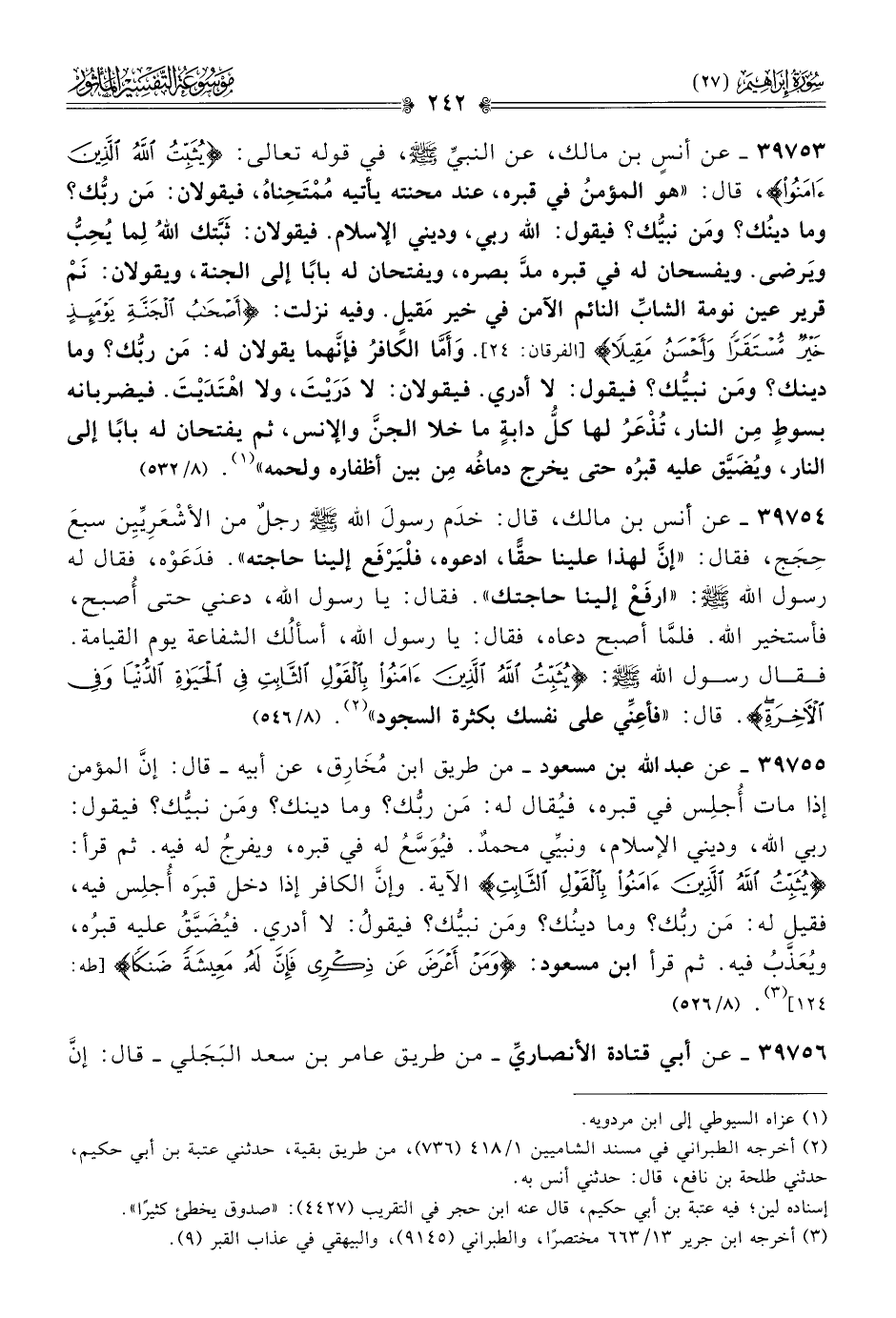 (¬٣) أخرجه ابن جرير ١٣/ ٦٦٣ مختصرًا، والطبراني (٩١٤٥)، والبيهقي في عذاب القبر (٩).