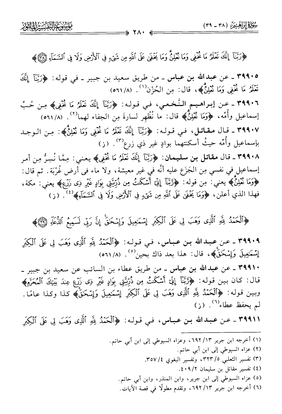 ٣٩٩٠٩ - عن عبد الله بن عباس، في قوله: {الحمد لله الذي وهب لي على الكبر إسماعيل وإسحاق}، قال: هذا بعد ذاك بحين (¬٥). (٨/ ٥٦١)