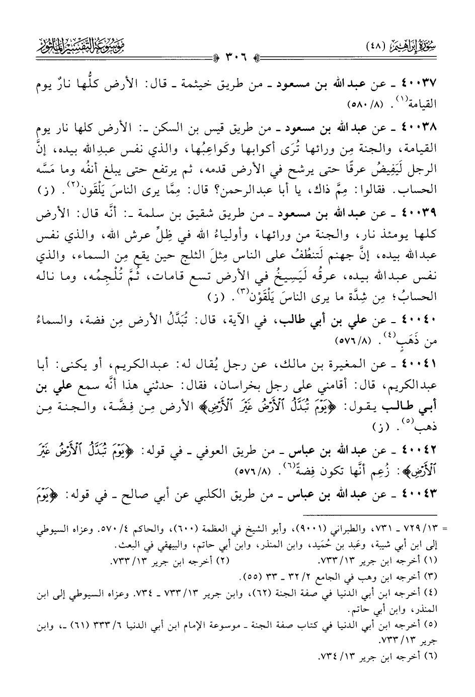 ٤٠٠٣٩ - عن عبد الله بن مسعود -من طريق شقيق بن سلمة- أنّه قال: الأرض كلها يومئذ نار، والجنة من ورائها، وأولياءُ الله في ظِلِّ عرش الله، والذي نفس عبد الله بيده، إنّ جهنم لَتنطُفُ على الناس مِثلَ الثلج حين يقع مِن السماء، والذي نفس عبد الله بيده، عرقُه لَيَسِيخُ في الأرض تسع قامات، ثُمَّ تُلْجِمُه، وما ناله الحسابُ؛ مِن شِدَّة ما يرى الناسَ يَلْقَوْن (¬٣). (ز)
