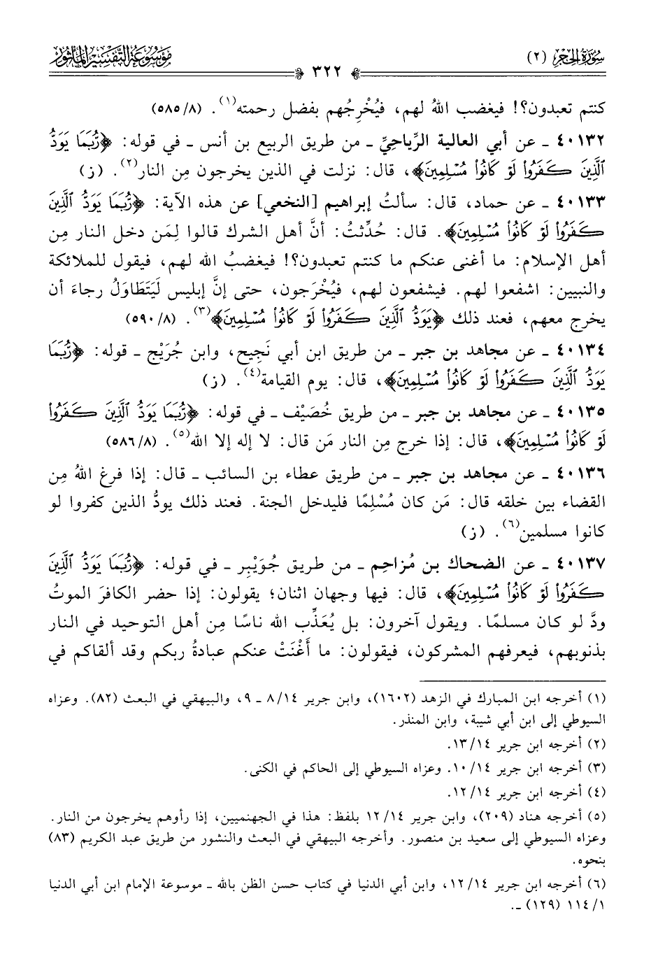 ٤٠١٣٢ - عن أبي العالية الرِّياحِيِّ -من طريق الربيع بن أنس- في قوله: {ربما يود الذين كفروا لو كانوا مسلمين}، قال: نزلت في الذين يخرجون مِن النار (¬٢). (ز)