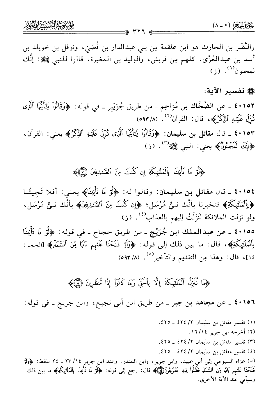 (¬٤) تفسير مقاتل بن سليمان ٢/ ٤٢٤ - ٤٢٥.
