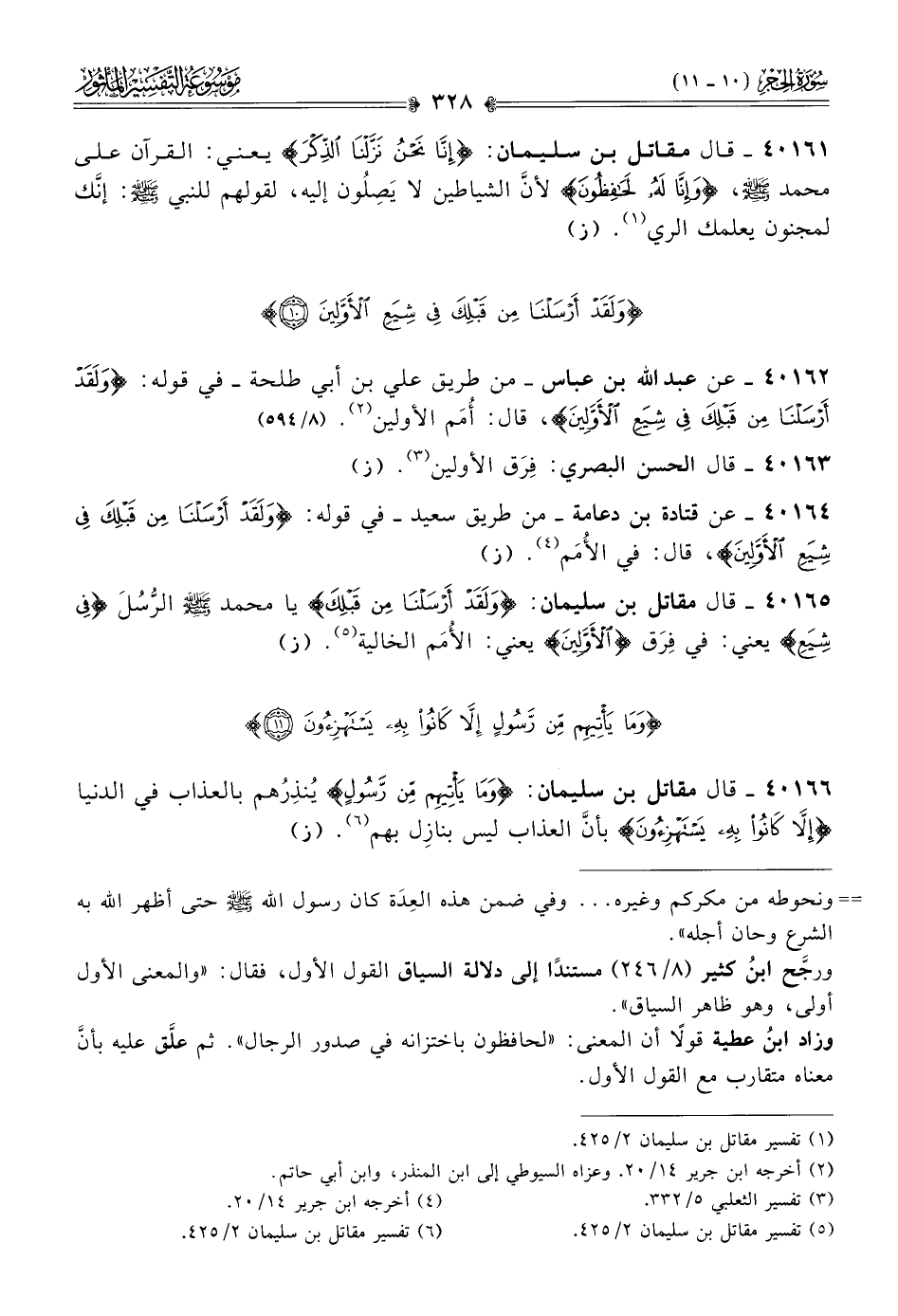 ٤٠١٦٢ - عن عبد الله بن عباس -من طريق علي بن أبي طلحة- في قوله: {ولقد أرسلنا من قبلك في شيع الأولين}، قال: أُمَم الأولين (¬٢). (٨/ ٥٩٤)