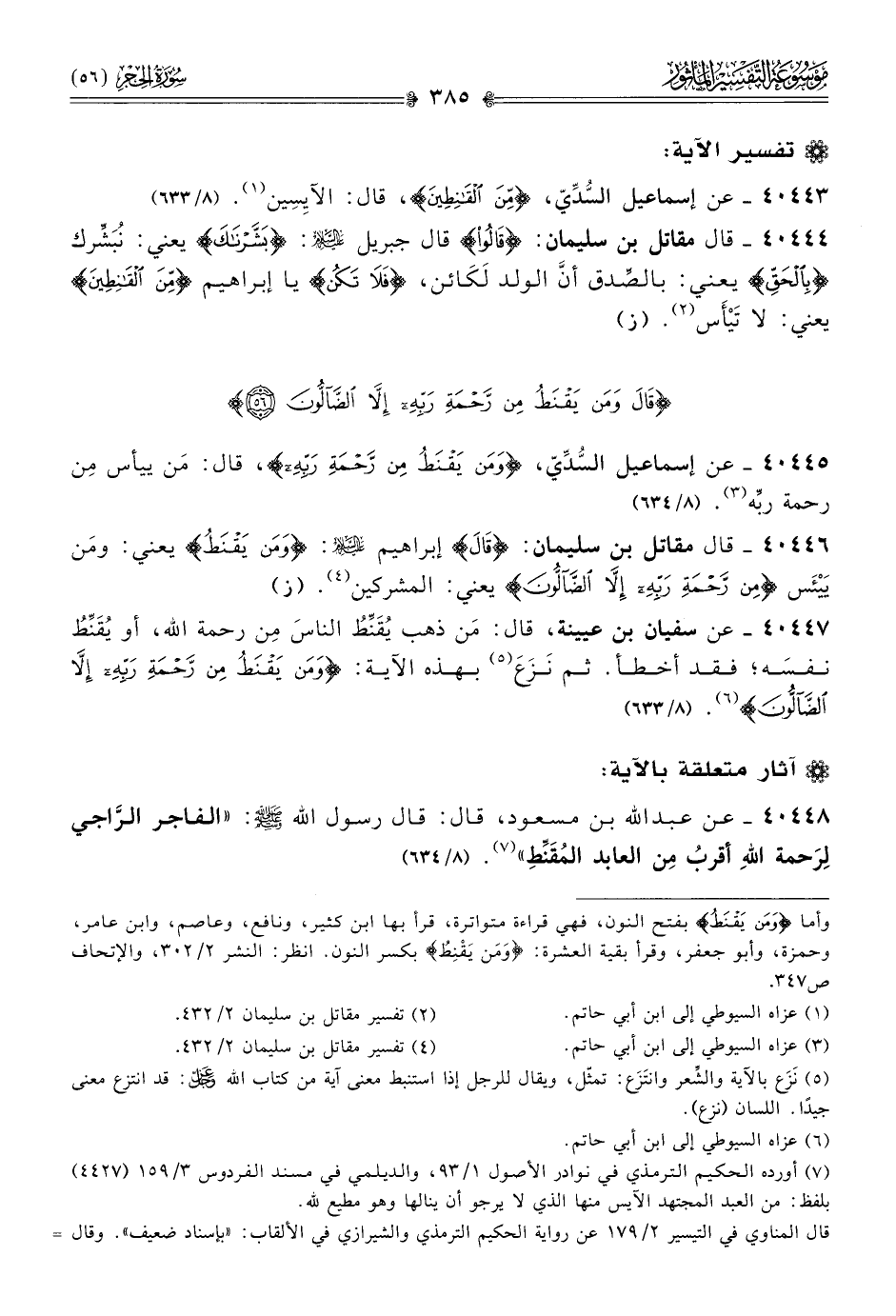 ٤٠٤٤٥ - عن إسماعيل السُّدِّيّ، {ومن يقنَط من رحمة ربه}، قال: مَن ييأس مِن رحمة ربِّه (¬٣). (٨/ ٦٣٤)