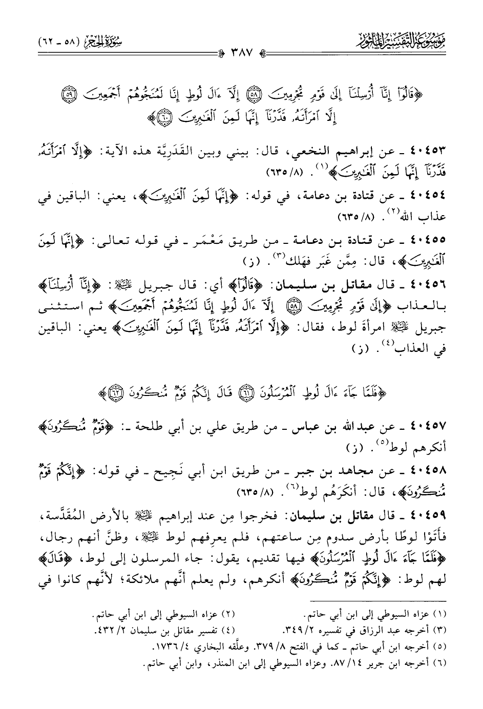 ٤٠٤٥٣ - عن إبراهيم النخعي، قال: بيني وبين القَدَرِيَّة هذه الآية: {إلا امرأته قدَّرنا إنها لمن الغابرين} (¬١). (٨/ ٦٣٥)