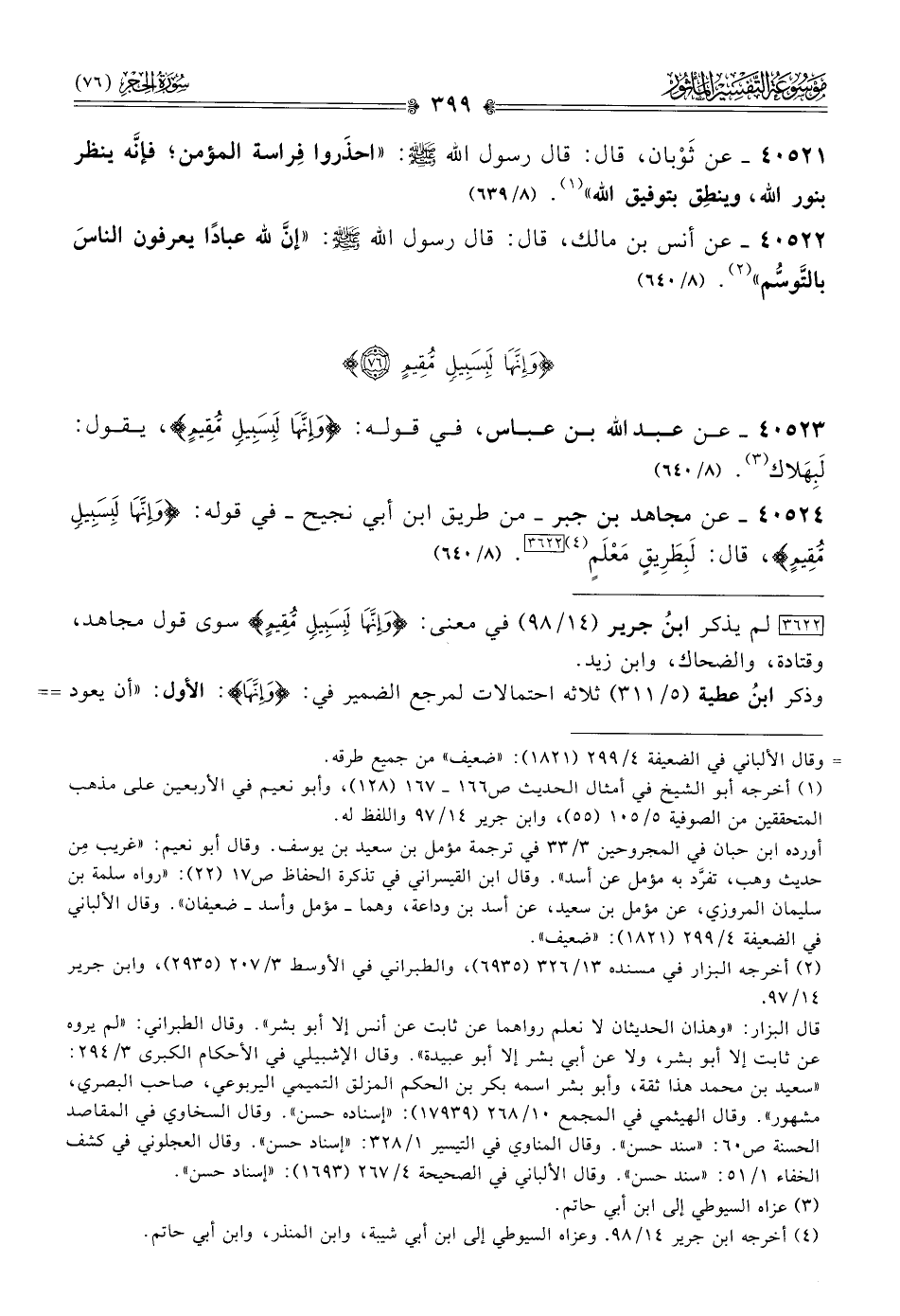 ٤٠٥٢٤ - عن مجاهد بن جبر -من طريق ابن أبي نجيح- في قوله: {وإنها لبسبيل مقيم}، قال: لَبِطَرِيقٍ مَعْلَمٍ (¬٤) [٣٦٢٢]. (٨/ ٦٤٠)