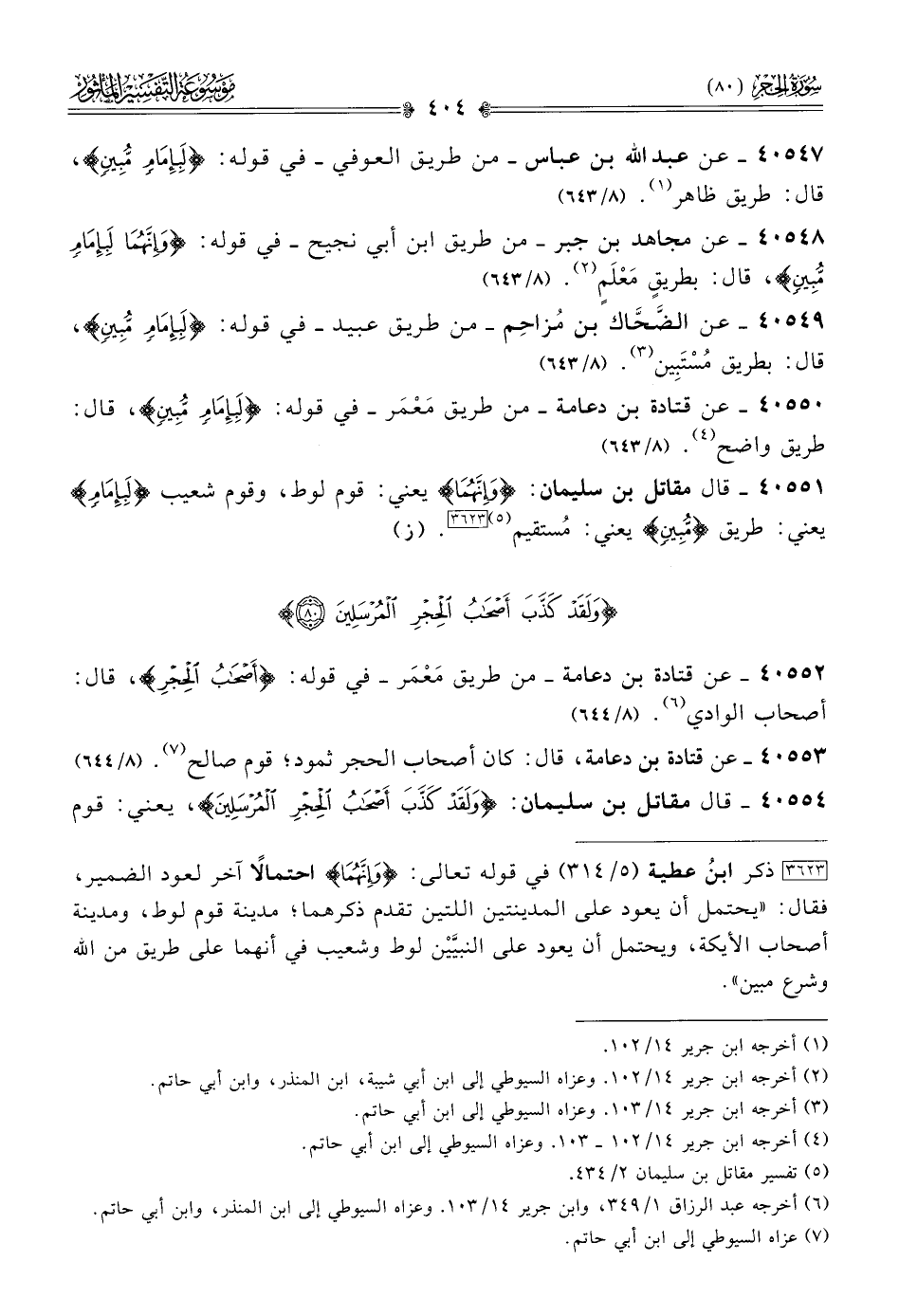 {وَلَقَدْ كَذَّبَ أَصْحَابُ الْحِجْرِ الْمُرْسَلِينَ (٨٠)}