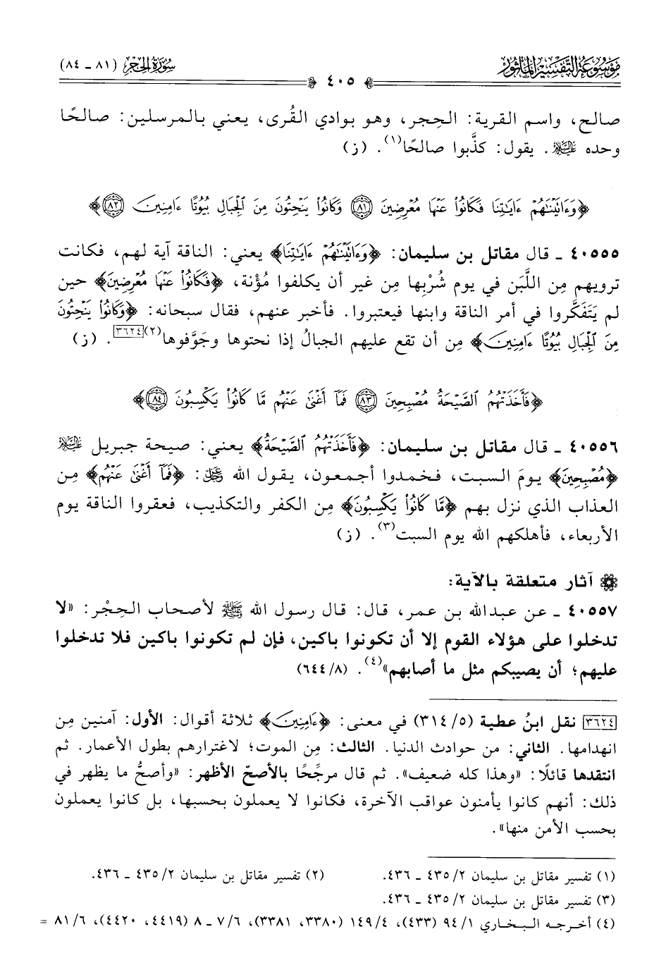 (¬٣) تفسير مقاتل بن سليمان ٢/ ٤٣٥ - ٤٣٦.