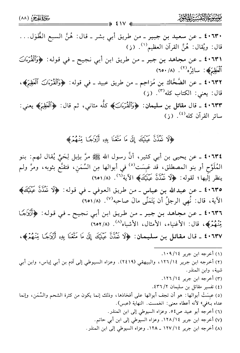 ٤٠٦٣٧ - قال مقاتل بن سليمان: {لا تمدن عينيك إلى ما متعنا به أزواجا منهم}،