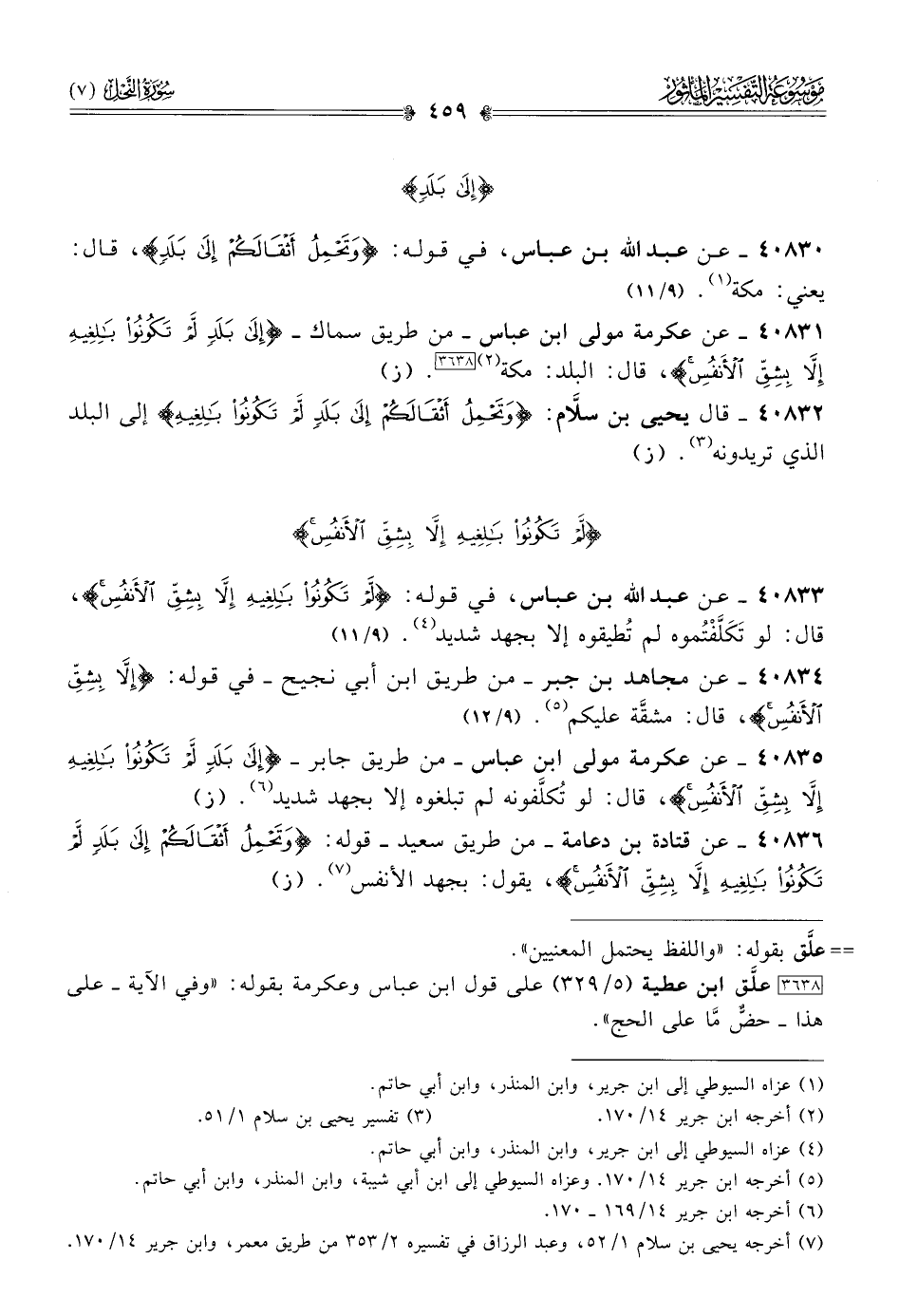 ٤٠٨٣١ - عن عكرمة مولى ابن عباس -من طريق سماك- {إلى بلد لم تكونوا بالغيه إلا بشق الأنفس}، قال: البلد: مكة (¬٢) [٣٦٣٨]. (ز)