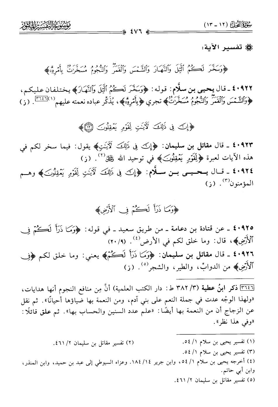 ٤٠٩٢٤ - قال يحيى بن سلّام: {إن في ذلك لآيات لقوم يعقلون} وهم المؤمنون (¬٣). (ز)