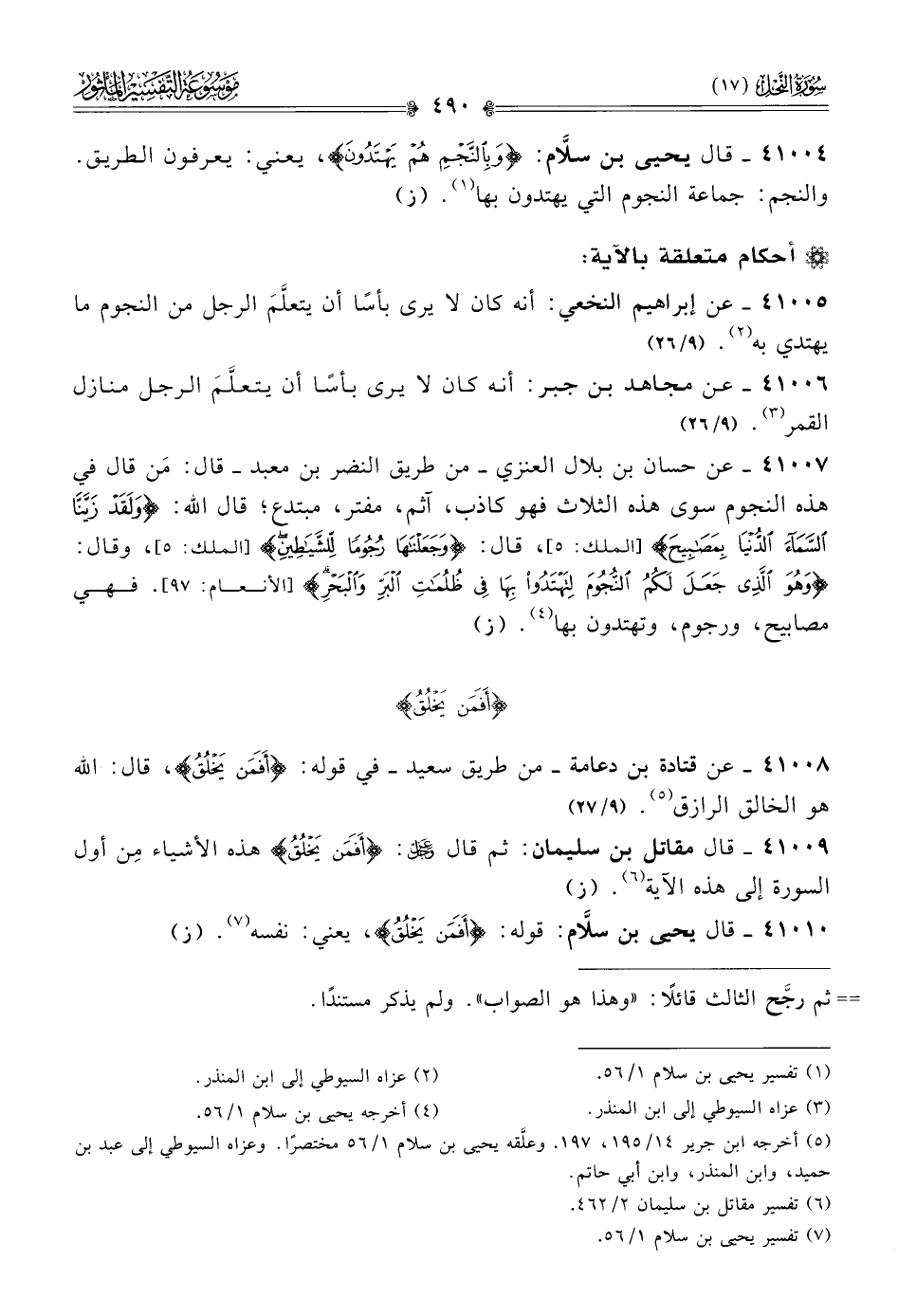 ٤١٠٠٤ - قال يحيى بن سلّام: {وبالنجم}، أي: {وبالنجم هم يهتدون}، يعني: يعرفون الطريق. والنجم: جماعة النجوم التي يهتدون بها (¬١). (ز)