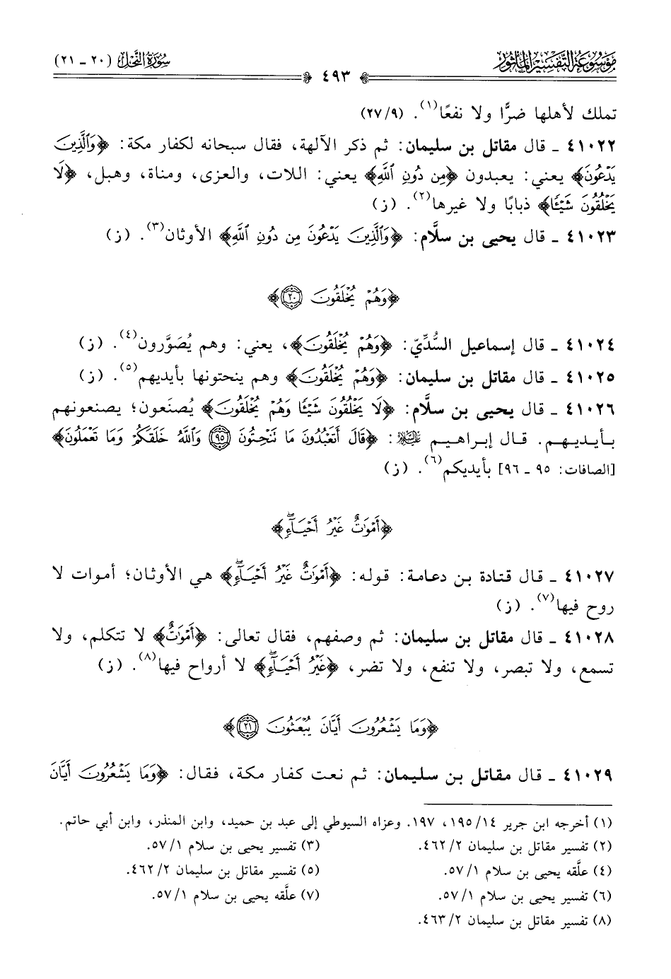 ٤١٠٢٥ - قال مقاتل بن سليمان: {وهم يُخلقون} وهم ينحتونها بأيديهم (¬٥). (ز)